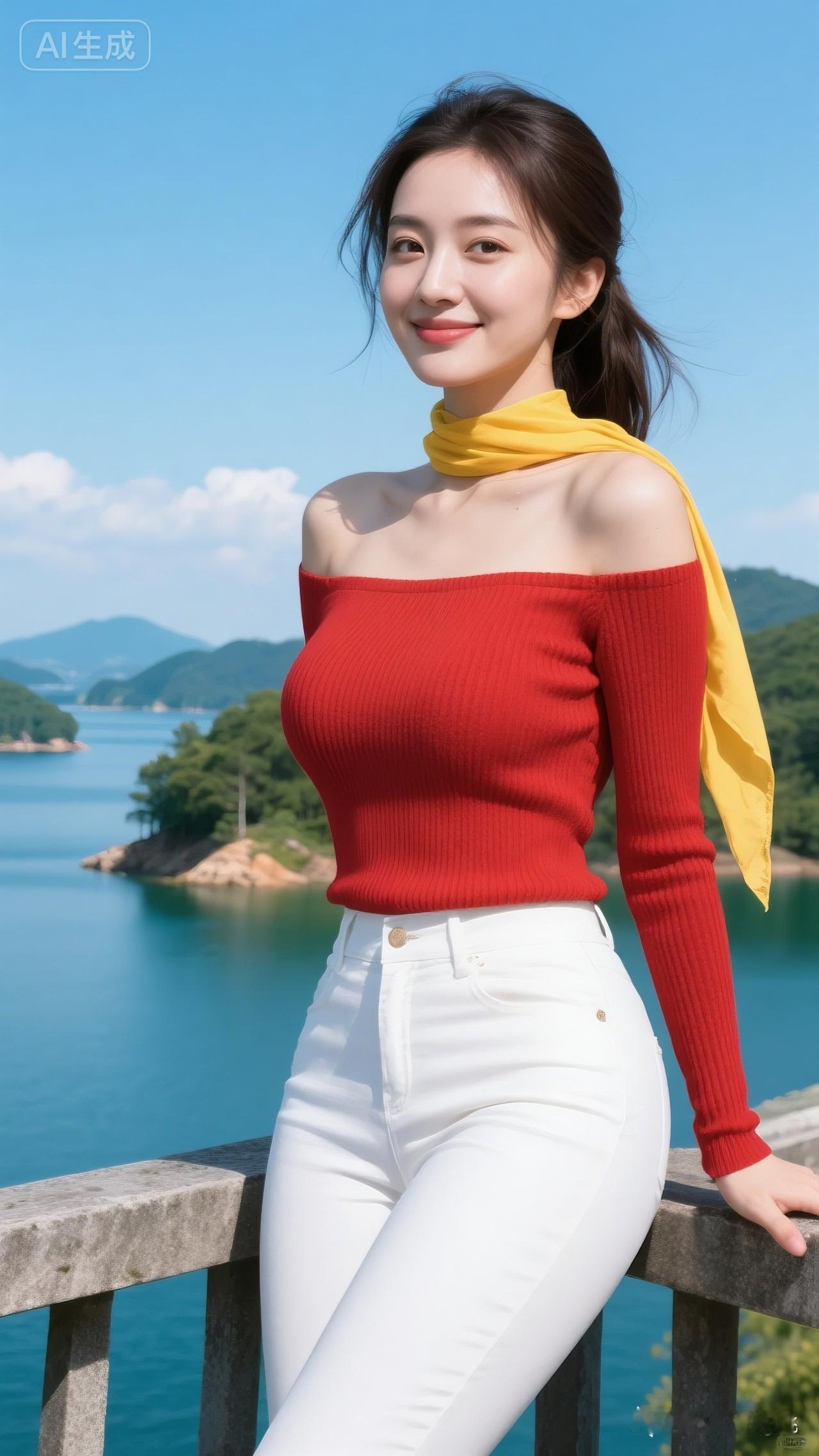 优雅气质,棕色紧身衣,完美身材,自信微笑