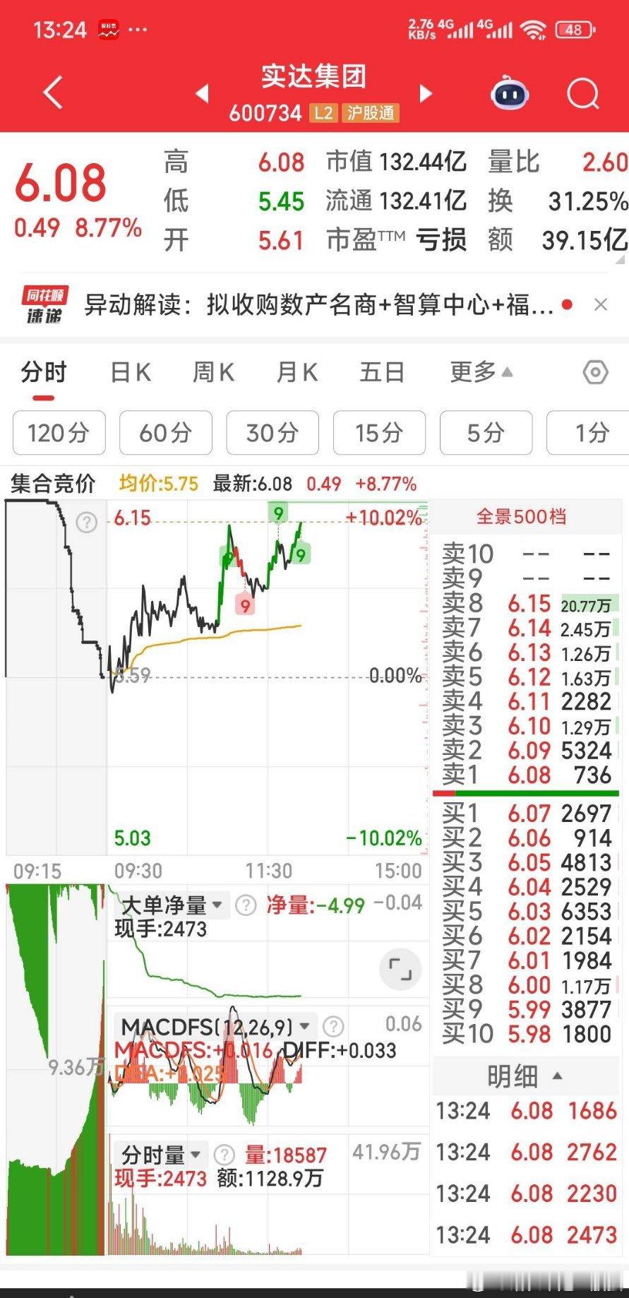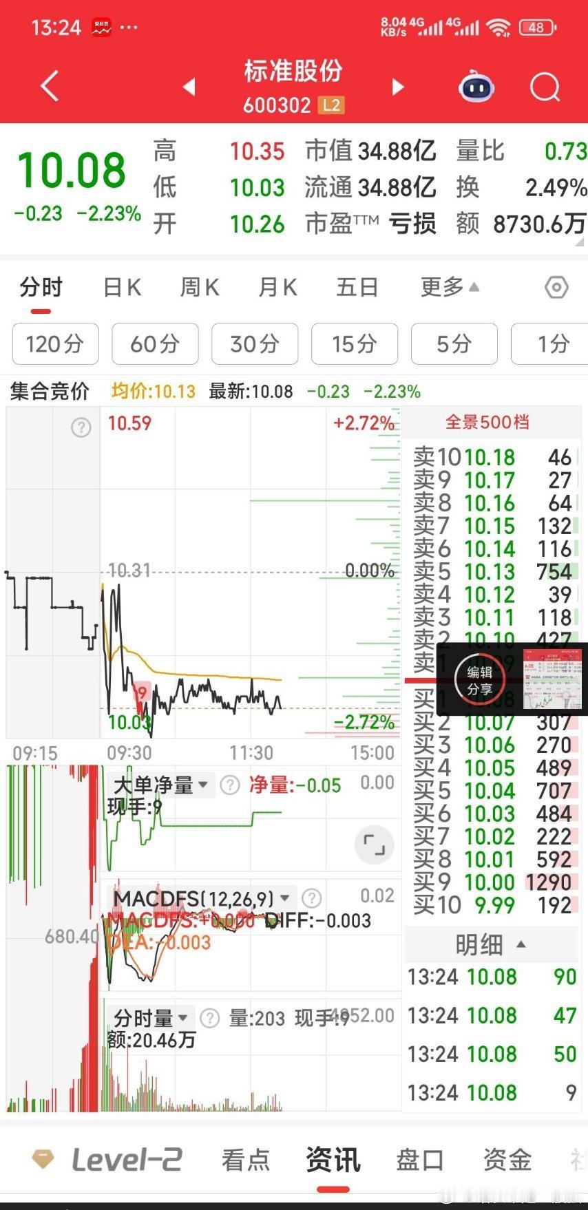 【一个建议】实达集团有望冲涨停,可继续加仓关注。标准股份人气偏弱,可减半仓。