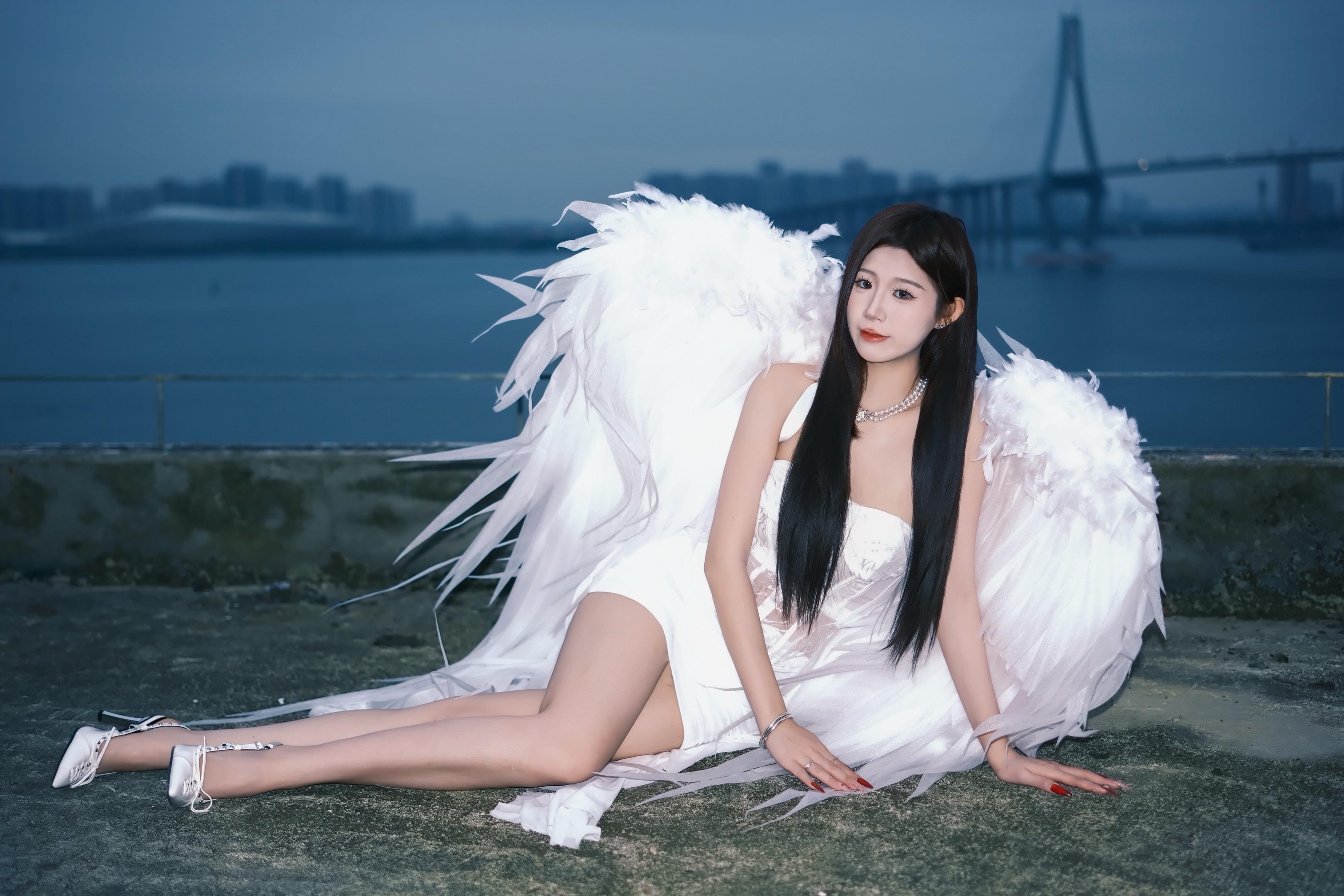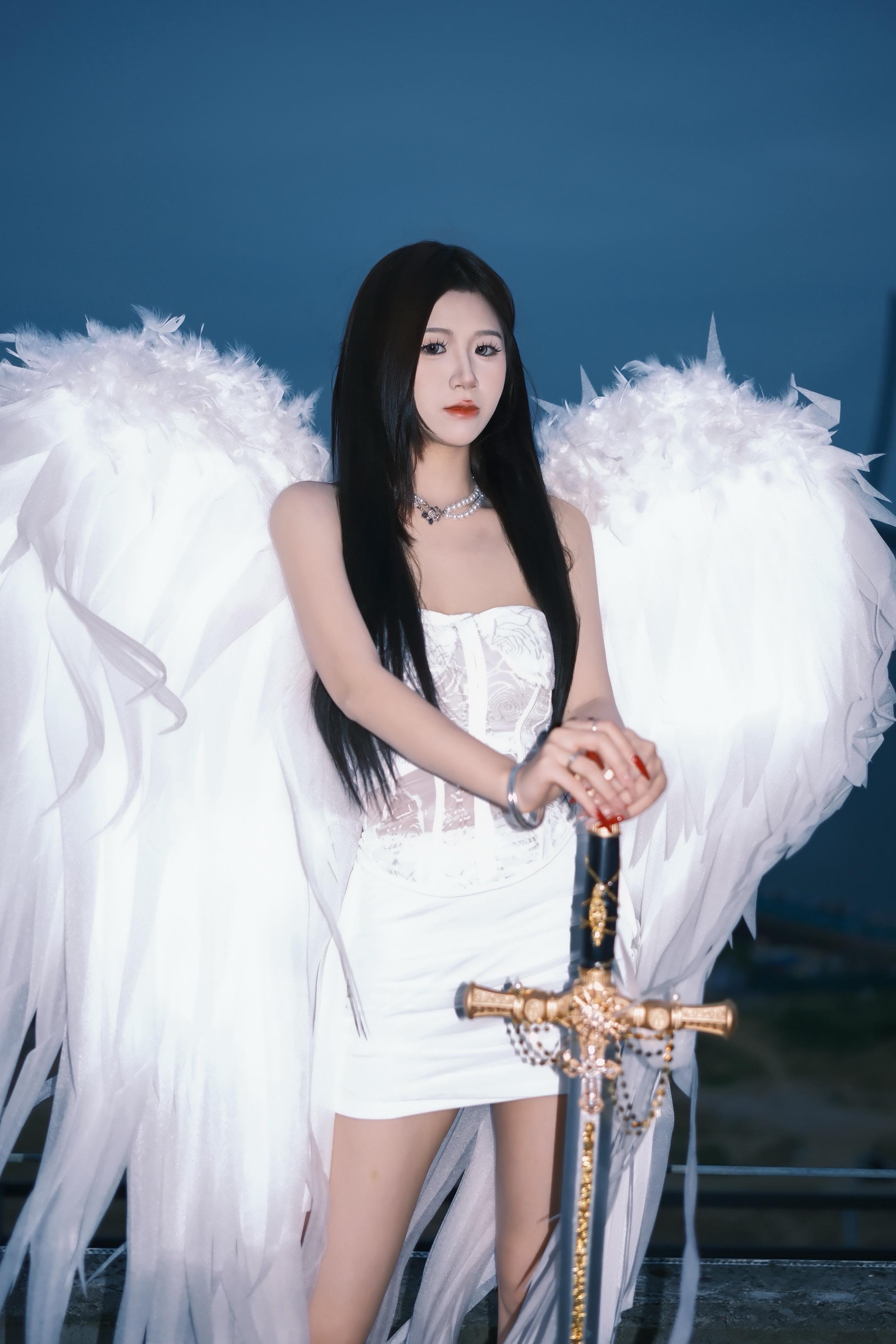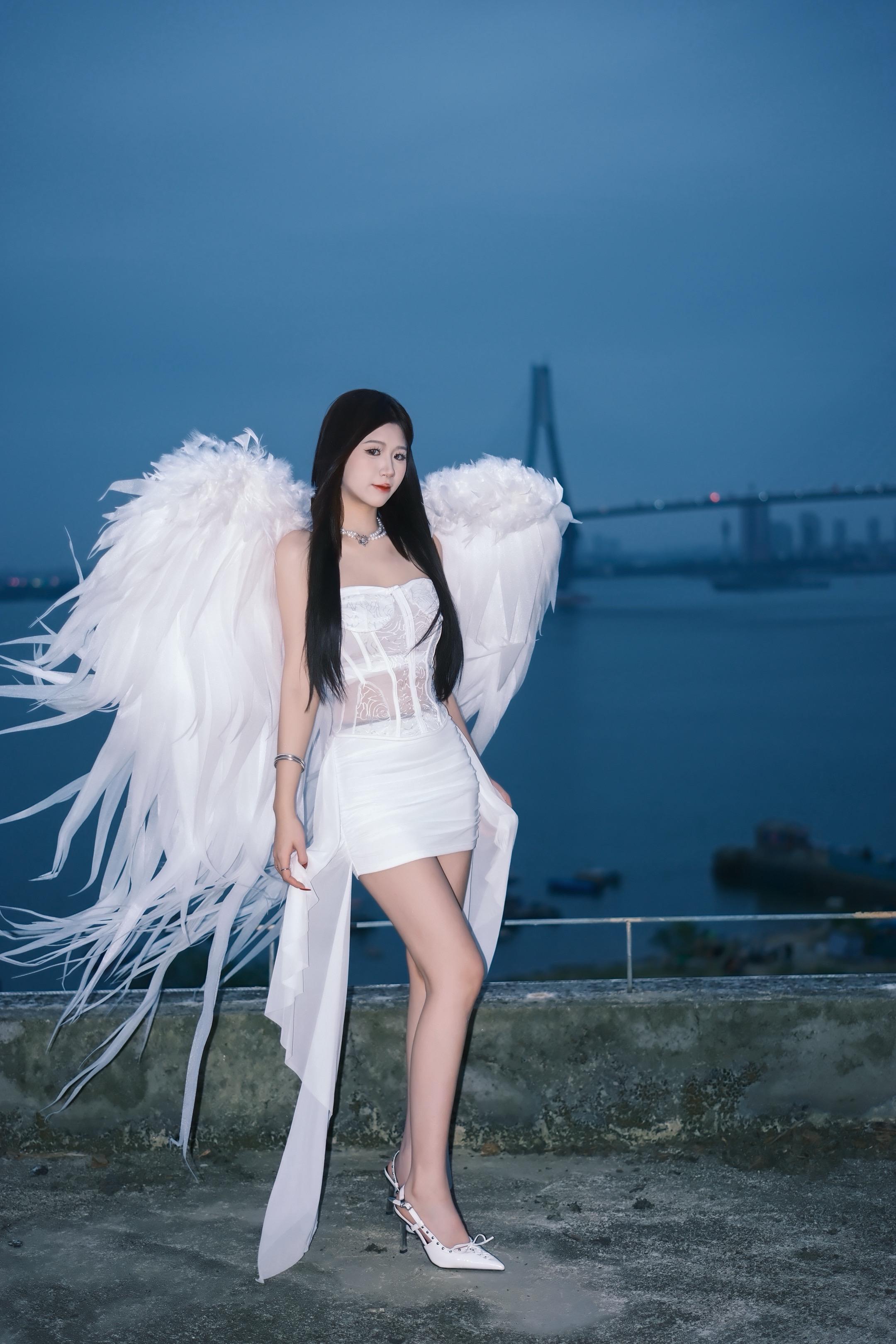 湛江互免约拍。在校园天台拍了组蓝色大扇子