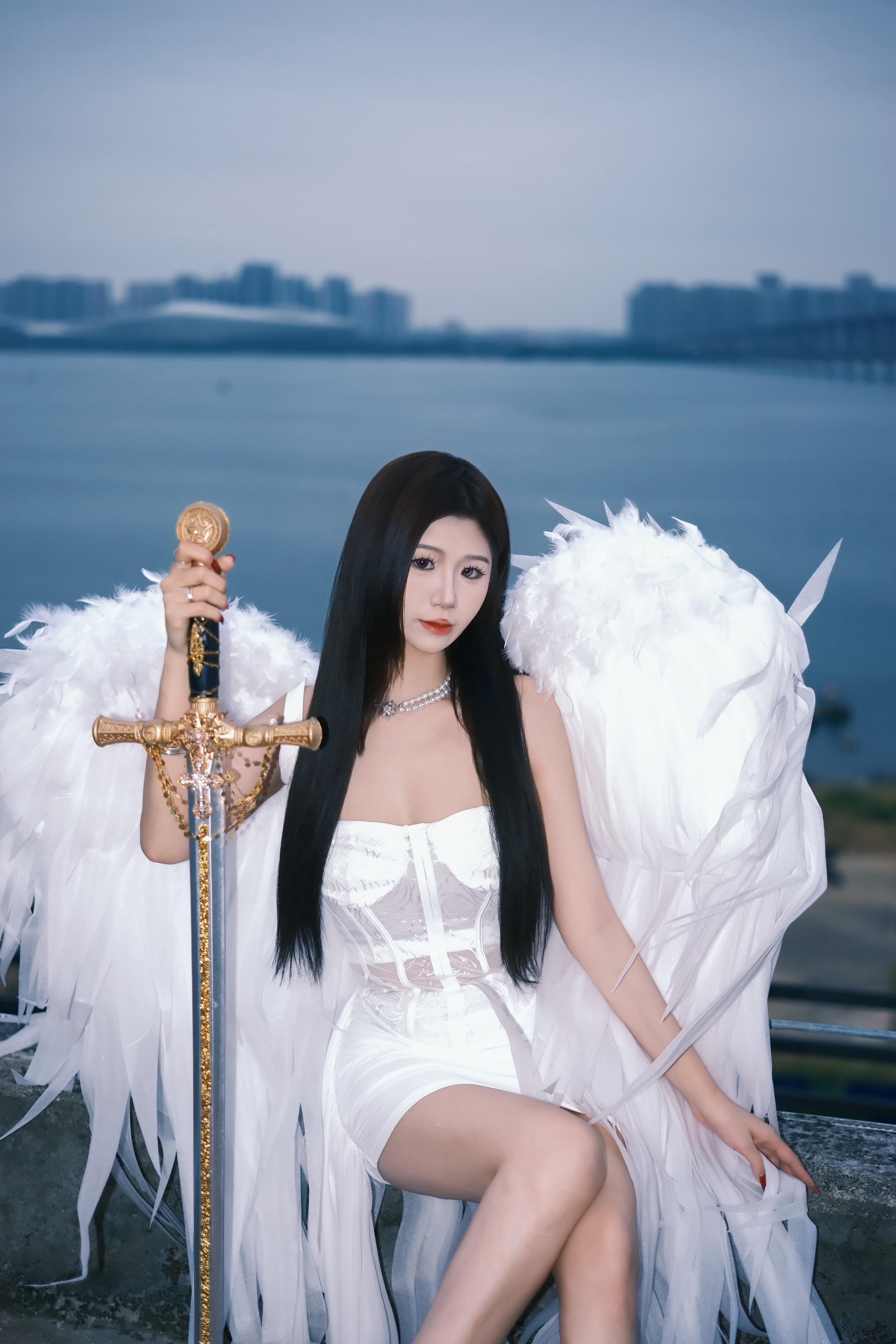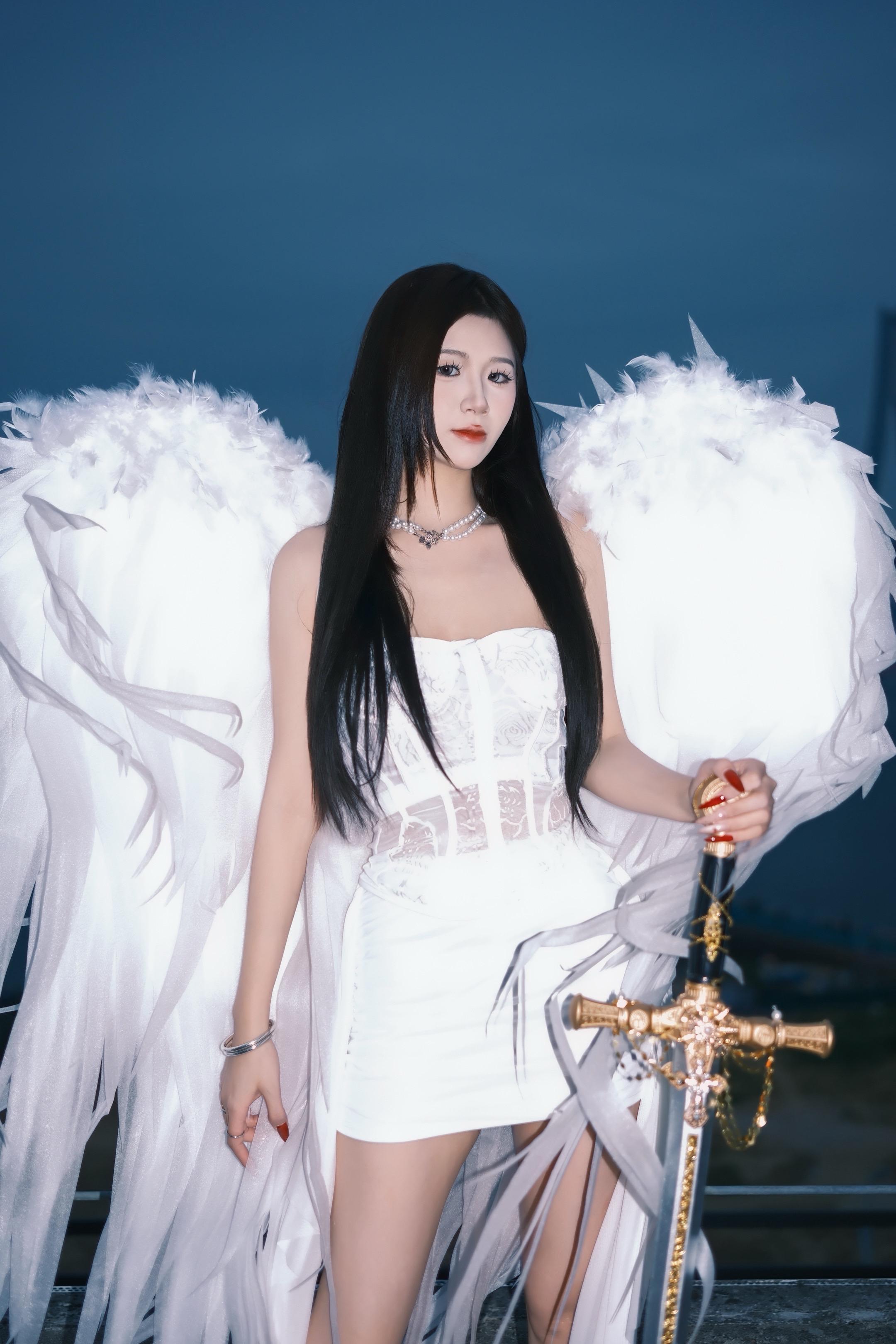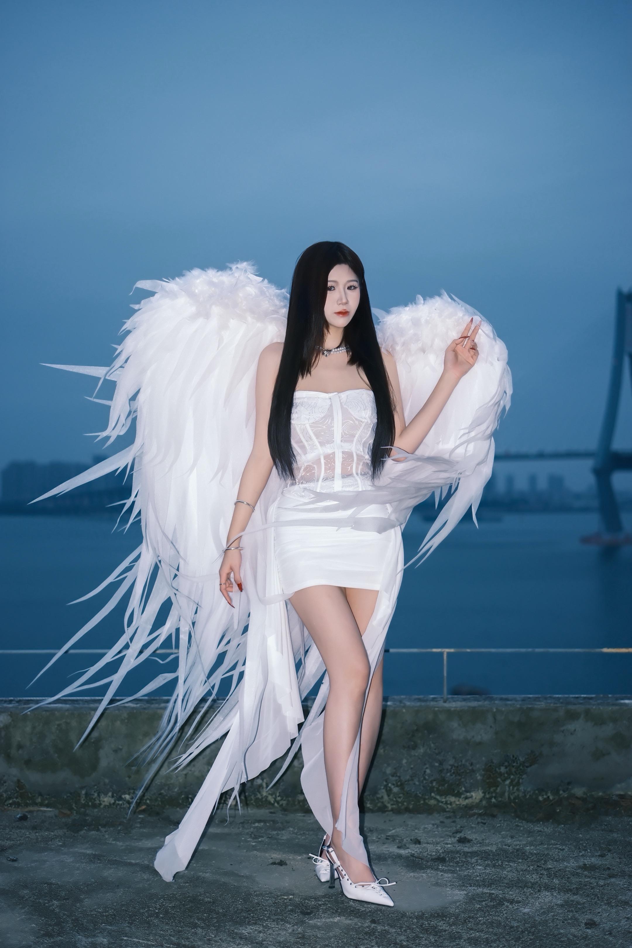 湛江互免约拍。在校园天台拍了组蓝色大扇子