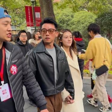 39岁郑恺带着妻子苗苗回母校上戏参加校庆活动,夫妻俩牵着手走路,被好多学生围观,人气非常高!郑恺穿着皮衣外套,虽然个子很矮,但长相挺帅的。
