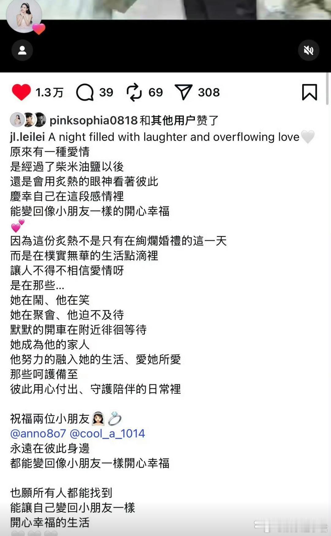 许玮甯婚礼后发文12月1日晚,许玮甯在社媒发文:“一切都很美好,谢谢大家的精心打扮,有爱、有温暖,谢谢你们的全然给予与放松,为我们的惊喜增添了很多会好好珍惜的回忆。”