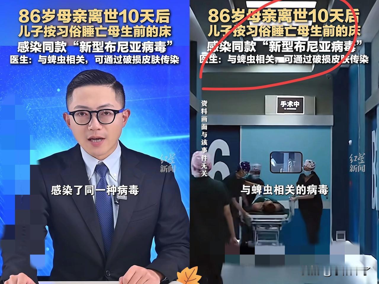 浙江,男子86岁母亲生病离世,按照当地习俗,男子睡在母亲生前睡觉的床上,没成想,刚睡十天他身体出现乏力呕呕吐的情况! 才短短10天,陈叔就开始浑身发软、恶心呕吐,跟母亲生前生病的症状一模一样! 赶紧送杭州大医院检查,结果出来所有人都懵了——他竟染上了和母亲同款的新型布尼亚病毒!万幸就医及时,才捡回一条命! 原来真相藏在母亲的日常里:老人平时总去菜地干活,秋天正是蜱虫最活跃的时候,大概率是被蜱虫叮咬后感染了病毒,而陈叔接触了母亲用过的床品,无意间被传染了! 这事看着是巧合,实则全是我们生活中最容易忽视的健康雷区! 别再觉得“守旧俗尽孝心”就可以不管健康了!很多人觉得“亲人的东西不脏”,接触逝者遗物时从不防护,可传染病真的会通过物品悄悄传播,不是否定习俗,而是孝心要有的,科学防护更不能少! 农村老人下地干活总爱穿短袖短裤,被虫子咬了也只当小事,殊不知秋天的蜱虫藏着大危险!还有人浑身乏力、发烧,总当成普通感冒硬扛,像布尼亚病毒这种病,拖一天就多一分风险,千万别拿身体赌! 更重要的是,被蜱虫咬了千万别硬拔!用酒精或烟头轻轻烫一下,让它自己松口,记得把虫体保存好,就医时能帮医生快速判断,这一步好多人都做错了! 其实不是我们不重视健康,而是太多健康误区藏在“习以为常”里,孝心再重,也得先守护好自己的身体,这才是对家人、对自己最负责任的方式! 大家对此有什么看法?