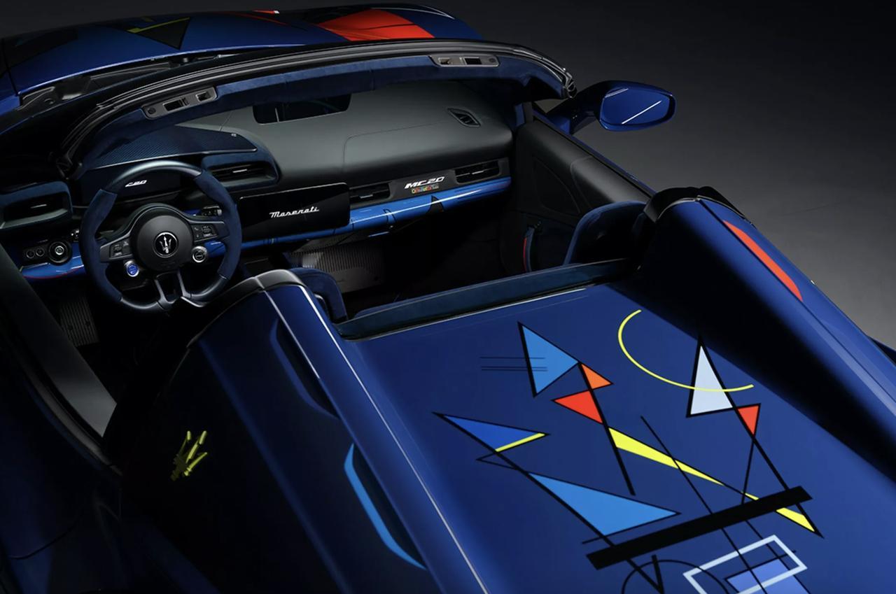 玛莎拉蒂把MC20 Cielo开进漫画~ 一次性定制“Opera d'Arte”由Fuoriserie部门手绘,几何抽象色块(蓝、白、青、红、黑、黄)包裹全身,20英寸轮毂也四色各不同;车尾三叉戟徽标被抽象成艺术品,车内座椅与方向盘覆蓝色Alcantara,并配专属徽章。 动力维持3.0T V6 Nettuno,拥有621马力、730牛·米,2025年还将推出纯电Folgore。富可敌国的客户可通过Fuoriserie继续选装碳纤维、定制面板与独一车漆,把座驾升维成移动画廊。【来自懂车帝车友圈】