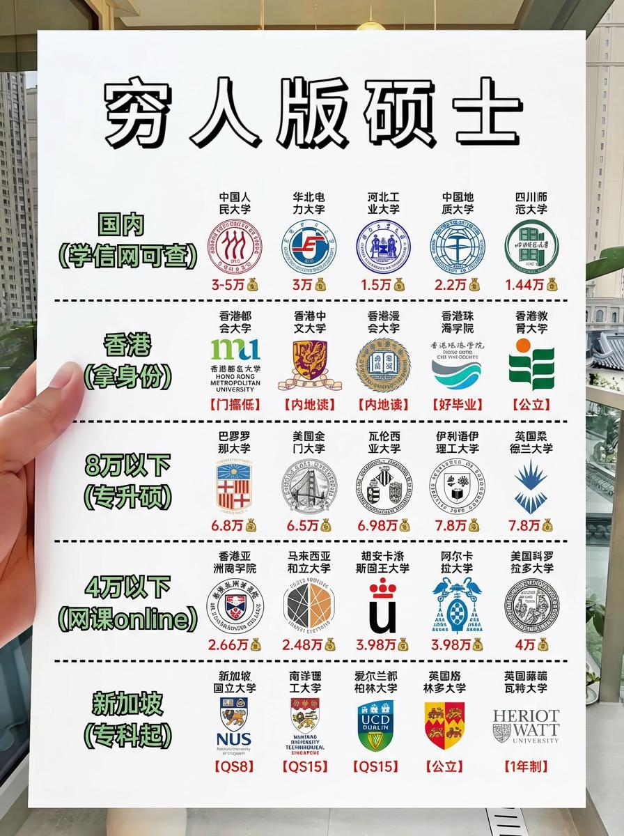 打破信息差!免考研读硕士,另一种高效的学历提升路径 还在为考研卷生卷死?其实,申请制硕士是许多职场人“弯道超车”的务实选择。无需全国统考,符合条件即可申请,最短1年即可毕业,所获双证同样受官方认可。 🆚 与传统考研相比,它的优势在哪? ✅ 入学方式:申请制,无需参加千军万马过独木桥的全国联考。 ✅ 时间成本:学制灵活,1-2年即可毕业,大幅节省时间。 ✅ 学业压力:以课程作业与论文为主,毕业难度相对友好。 ✅ 最终证书:毕业后可获得国家承认的硕士学位,可做留服认证。 🎯 适合这样的人群 工作繁忙,无法脱产备考的在职人士 急需硕士学历用于积分落户、考公考编、职称评定 希望快速提升学历背景,增强职场竞争力的职场人 📚 覆盖主流学科方向 商科管理类:MBA、管理学、公共管理 教育与心理类:教育学、心理学 人文艺术类:语言学、传播学、艺术学、设计学、翻译学 信息技术类:计算机科学、软件工程 社会科学与健康:社会工作、护理学、公共卫生 💡 关键提示 申请制硕士≠含金量低。它为国家认可的正式学历提升途径,其证书在求职、落户、考编、申博等方面具有同等效用。选择正规项目,是实现职业生涯跃升的关键一步。