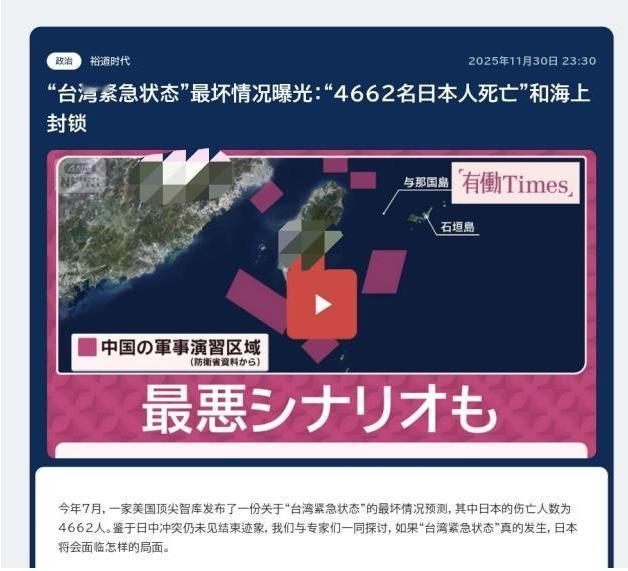 难怪高市口出狂言!日媒:若日本介入台海,最多只伤亡4662人。 高市早苗敢在国会说出,"台湾有事即日本有事",根子或许就扎在,那份被朝日电视台翻炒的CSIS报告里。 当地时间11月30日,日本朝日电视台突然开始炒作一则旧闻:今年7月,美国智库战略与国际研究中心(CSIS)的报告称,经过26次兵推显示,若台海生战,美军必须介入,届时,日本可以保持中立,不出兵台海,只允许美军使用其领土上的基地,作为转运点提供援助,最坏情况下,日本的伤亡人数为4662人。 事实上,CSIS不是第一次玩这种数字游戏了。去年他们说3600枚导弹,能"团灭"解放军登陆舰队,今年又算出日本"中立支援"美军的伤亡红线。可这些数字的共同点,是都建立在对中国军力的选择性失明上。 比如假设日本只开放基地不参战,却忽略了一个基本事实:当那霸机场起降美军战机、横须贺港口停靠航母战斗群时,解放军的导弹不会区分"中立设施"和军事目标。 就像二战时美国轰炸东京,不会因为某栋楼里有平民就停手——现代战争中,军事基地的地理属性,本身就是靶子。 高市早苗们显然选择性相信了,这份报告的"乐观"部分。他们或许忘了,冲绳战役中美军伤亡7.5万人,日方军民死亡24万,而那只是一场局部岛屿争夺战。 台海若爆发冲突,日本西南诸岛会成为最前沿的火药桶。从与那国岛到石垣岛,这些距台湾仅百十公里的据点,早已被日本改造成"离岛防卫"要塞。 但他们可能没算明白:当年忽必烈的舰队毁于台风,如今东风导弹可不会看天气发射。光是2024年解放军环台军演,火箭军就曾在日本海方向划定禁航区,这种威慑早已穿透了所谓"地理屏障"。 更荒诞的是CSIS的"中立悖论"。报告说日本保持中立,却允许美军使用基地,这就像在说"我没动手,只是递了把刀"。 1937年日本侵华时,也声称"不扩大事态",但丰台的枪声一旦响起,塘沽的补给船就成了,合法打击目标。 解放军的作战原则里,从来没有"只打美军不碰日本"的选项。看看2025年中日舰艇在钓鱼岛附近的摩擦——日方一艘巡逻船被反舰导弹模拟攻击后,海上自卫队至今不敢在该海域夜间巡航。这种现实威慑,比任何兵推都更真实。 高市早苗的底气,还来自对美国"保护伞"的迷信。但CSIS的另一份报告暴露了真相:他们建议美军袭击中国大陆港口和机场时,特别提到"要承受重大伤亡"。 换句话说,美国愿意让日本当炮灰,却未必愿意为日本流血。就像1945年冲绳战役,美军为减少伤亡,默许日军在岛上屠杀平民——历史证明,盟友的牺牲在战略棋盘上只是数字。 现在日本右翼鼓吹"一亿玉碎"的变种剧本,却忘了当年原子弹落下时,美国可没跟他们商量伤亡数字。 这份4662人的"死亡清单",本质上是美国给日本画的大饼。就像冷战时期用"共产主义威胁"忽悠西欧扩军,现在用"中国威胁"绑架日本买单。 CSIS的股东名单里,洛克菲勒、埃克森等石油财团赫然在列——他们关心的从来不是日本的死活,而是西太平洋的战略支点。 看看日本近年军费突破GDP2%,大量采购美制导弹,这些真金白银最终都进了,美国军工复合体的腰包。 最讽刺的是,日本国内对这份报告的质疑声从未停歇。社民党山城博治痛斥高市"把日本拖入战场",《京都新闻》直言"首相才是日本的存亡危机"。 这些声音比任何兵推都更接近真相:当政客用精确到个位的伤亡数字粉饰战争时,真正要流血的,是冲绳渔民的儿子、大阪上班族的父亲、福岛农妇的丈夫。 1945年的冲绳战役,20万平民死亡的数字,从来不是兵推里的小数点。 或许高市早苗该重读一下《波茨坦公告》:日本的主权被严格限制在四岛之内。当她把台湾划进"存亡危机"时,已经踩过了战后国际秩序的红线。 解放军东部战区的发言人说得清楚:"台独分裂一日不止,军事行动一刻不停。"这句话的潜台词是:任何外部干涉,都将被视为新的侵略战争。 到那时,4662这个数字,可能只是第一波打击的伤亡统计。现在,轮到日本政客想想,他们赌上的,究竟是4662人,还是整个国家的未来。