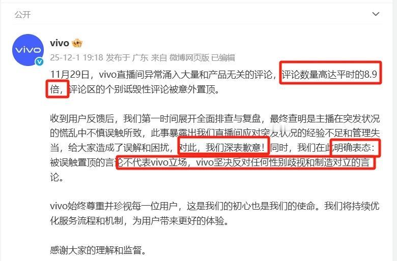 停停停,真的有人认真看声明吗 [捂脸][捂脸]别说直播了,日常发微博都可能手滑点赞。将心比心,是不是有些言论是不是有点太过分了...vivo回应直播间遭遇异常网暴 不造谣不传谣不信谣 谣言止于智者 请大家认真看完 vivo