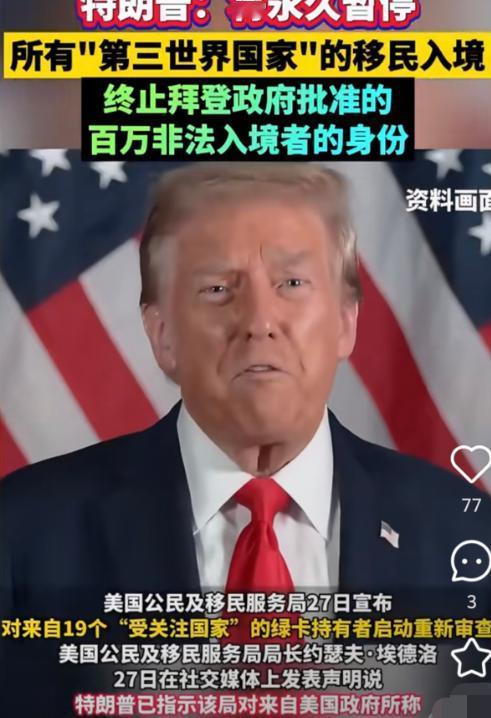万万没想到!特朗普又双叒叕来事了。他宣布:永远不允许第三世界国家的公民移民美国! 想移民美国的人,听到这个消息,一定会很失落,因为永远都不允许你移民美国了。但如果想留在自己国家发展的听众,这个消息反而是个机会。 先说人才这事儿。就拿隔壁王师傅家儿子来说,去年还在纠结要不要卖房子送孩子去美国读计算机,现在政策一变,孩子反倒留在北京中关村,跟着团队搞国产芯片。 您猜怎么着?上个月刚签了个千万级的订单。搁以前,这孩子说不定在美国大厂当“码农”,现在可是给咱自己的科技公司挑大梁。 特朗普说“第三世界移民占美国福利”,可他不知道,这些被他拒之门外的人,在自己国家正成为“香饽饽”。现在国内各省都在抢人才,硕士毕业给安家费,创业给补贴,这在十年前敢想吗? 再说生意经。以前好多中小企业主总觉得“美国认证”才是金字招牌,现在被逼着练内功。 就像河南的李老板,以前专给美国超市代工厨具,特朗普一禁移民,美国那边人工贵了,订单反倒转回国内。 李老板趁机把厂子改成智能生产线,现在不仅接国内的单,还卖到东南亚。 您看,坏事变好事,逼着咱从“世界工厂”往“智造工厂”迈步。 还有农业这一块。 湖北的张婶种了半辈子橙子,以前总听说“美国新奇士橙子”多厉害,现在村里搞起了合作社,大学生村官带着大伙儿做电商,橙子贴上“三峡红”的牌子,卖到北上广。 上个月还跟非洲客商签了合同——您瞧,特朗普不让咱去美国,咱反倒和第三世界国家做起了生意。这就好比邻居不让你串门,你转头跟对门的老哥唠上了,发现人家家里的茶叶更对口味。 最关键的是,这政策让咱看清了“美国梦”的虚实。 以前总听说美国福利好,可素材里说5300万外来人口多数靠救济,连阿富汗给美国当过翻译的人,最后都只能住贫民窟。现在好了,国内医保全覆盖,农村养老有新农保,县城里的医院都配上了CT机。 老家的堂弟去年摔断腿,在县医院花了一万多,医保报了七千,要是在美国,这医疗费能把人逼跳楼。 再说年轻人的选择。以前大学生毕业非北上广深不去,现在好多人往二线城市跑。成都的电子科大,今年毕业生有三成留在本地,为啥? 本地的游戏公司、无人机企业开的工资不比深圳低,还能住上便宜的人才公寓。 特朗普这政策,看着是堵,其实是倒逼。 就像黄河悬河不能硬挖,得靠疏导。咱老祖宗早就说过“肥水不流外人田”,现在这肥水被逼着往自家田里流,反而滋养了自个儿的庄稼。 您看现在县城的高楼越盖越多,乡镇的快递点开到村口,连广场舞都用上了直播——这些变化,多多少少都跟“出不去”的人有关系。 最后说个实在的。 老家的侄子去年从美国硕士毕业,本来想留那儿,结果签证被拒。回来后进了杭州的新能源车企,今年跟着团队搞出了新电池技术,年终奖拿了二十万。 他说:“以前觉得美国月亮圆,现在发现自家的太阳能路灯更亮堂。”您看,这就是机会——当外面的门关上时,屋里的灯反而更亮了,照亮的是咱自己的路。