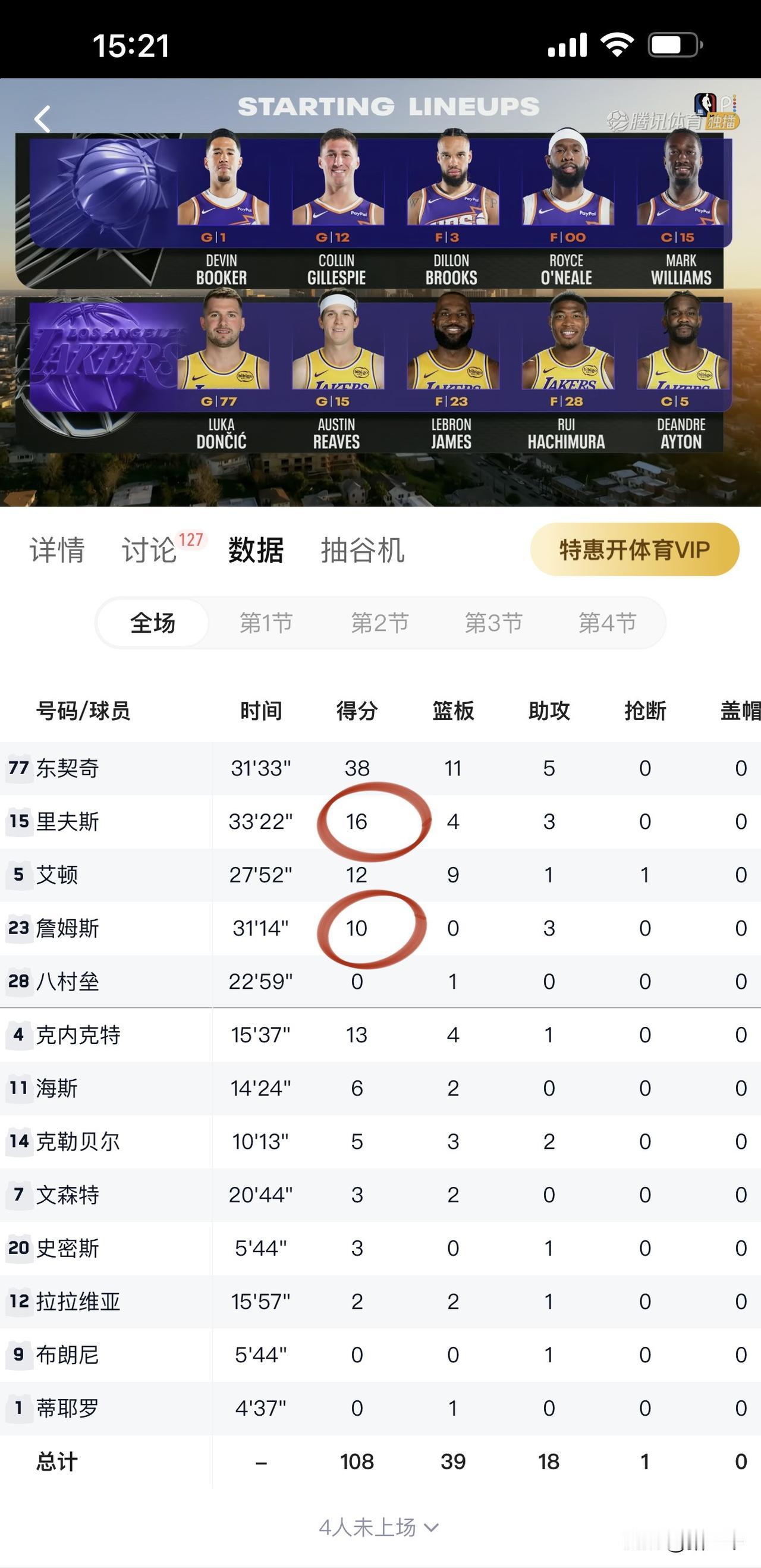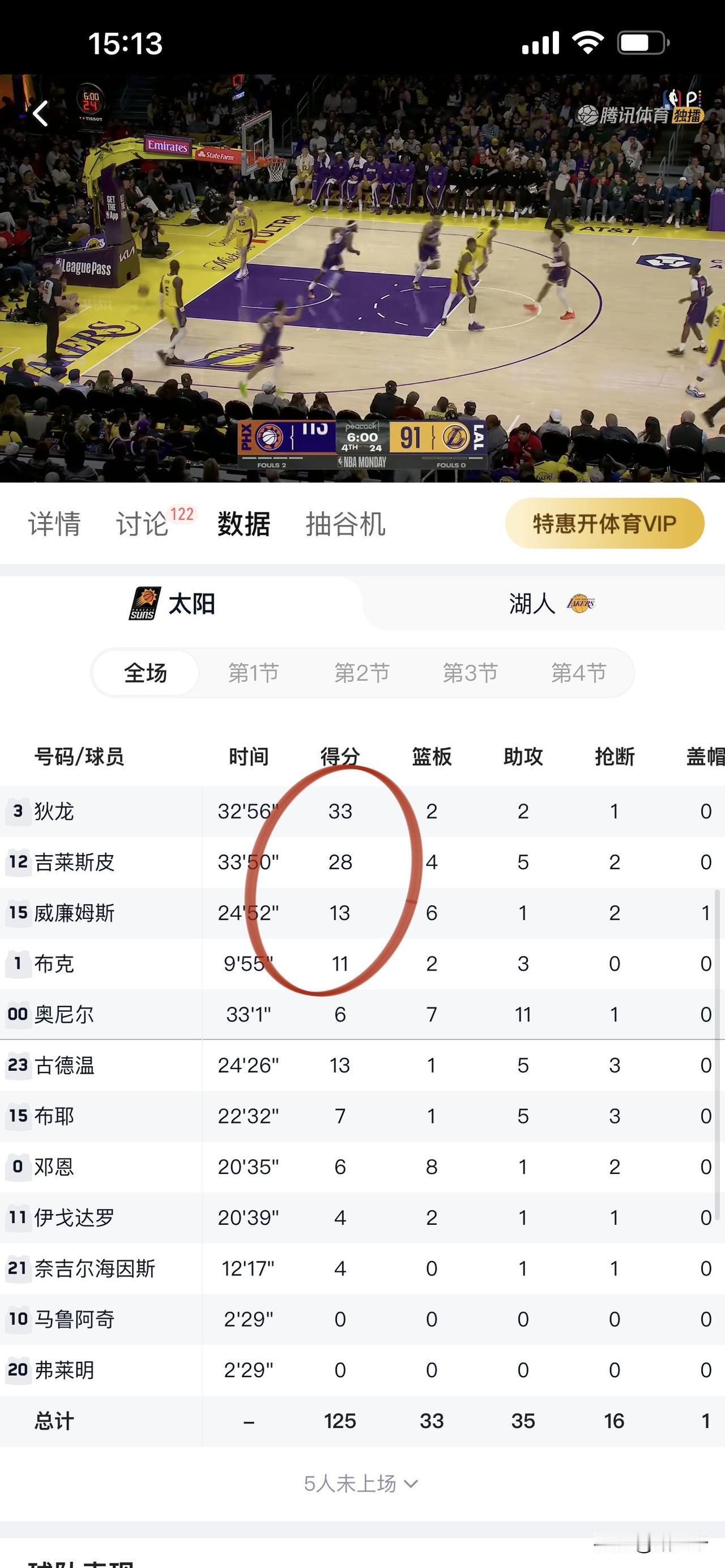 湖人战太阳遇世仇, 狄龙打的詹姆斯和里夫斯毫无颜面。 经此一役后, 联盟球队都看出了湖人的“内虚”, 詹姆斯老了碎片化比赛时间若发挥不好反而拖累角色球员的发挥; 詹姆斯回来以后“胡三崩”又回来了, 这里面肯定有一些主导的关联因素。 湖人的防守就像豆腐块, 这也间接导致湖人篮板成为最大弱项。 狄龙和詹姆斯的恩怨, 缘于前年“湖灰”大战狄龙狂放豪言, 后来詹姆斯小弟里夫斯用颜射回击! 今次詹姆斯和近期联盟最炙手可热的球星里夫斯,被狄龙强势表现击的七零八落。 没有防守和篮板的湖人, 打强队湖山崩, 打弱队又打出季后赛即视感,哎! 这一场比赛太阳当家球星布克只打了一节, 但是狄龙打出了“王侯将相宁有种乎”的气势, 也把湖人队的缺点完全暴露出来! …