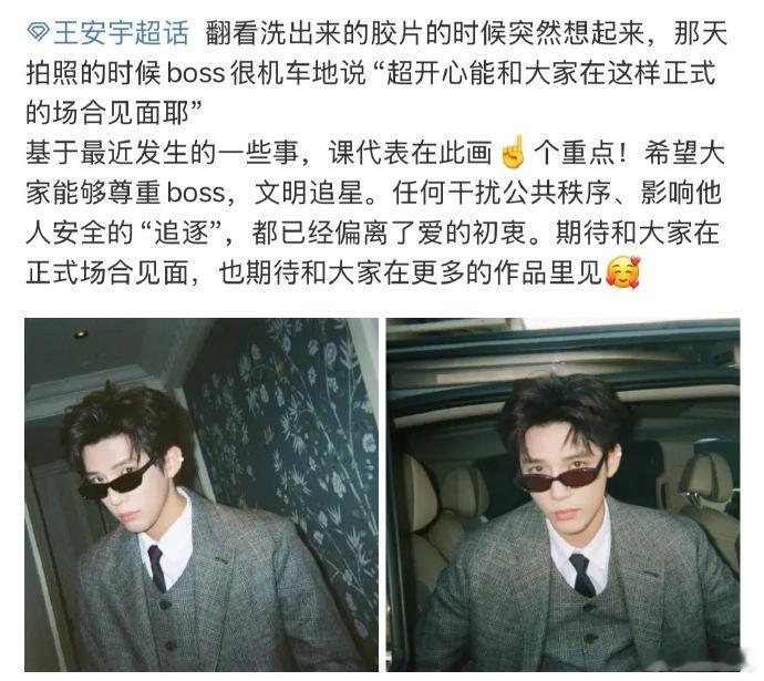 王安宇方回应私生追车王安宇方呼吁文明追星。