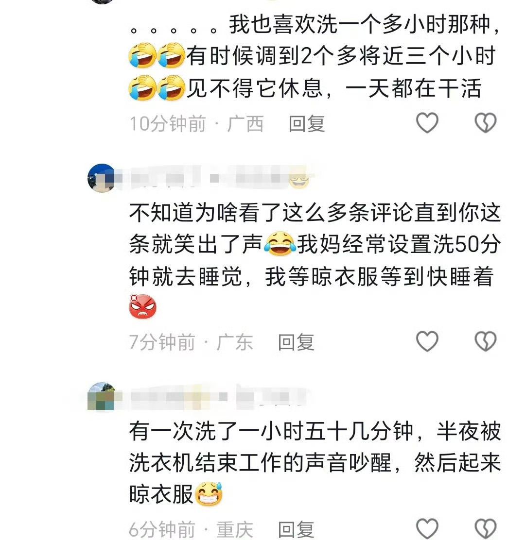 有一次洗了一小时五十几分钟,半夜被洗衣机结束工作的声音吵醒,然后起来晾衣服
