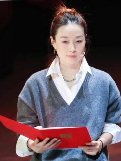 上戏校庆现场,马伊琍一出场就让人挪不开眼!丸子头扎得利落,灰色阔腿裤配羊毛马甲,