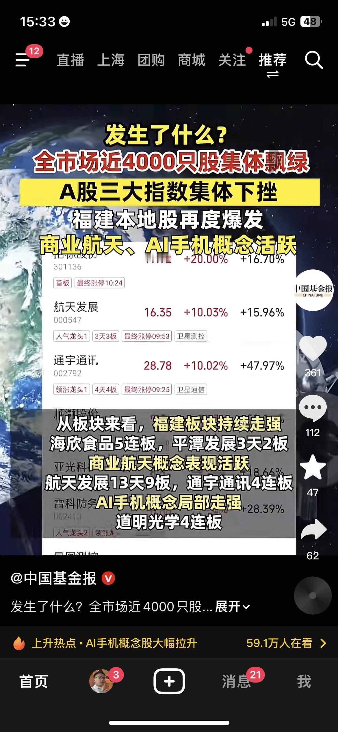 A股4000股飘绿!这3个板块却疯涨,你抄对了吗? 兄弟们,今天A股太刺激了!近4000股集体飘绿,我朋友在群里吐槽“亏的钱够吃半个月火锅”!但跌市藏黄金,这3个板块杀疯了,堪称“熊市避风港”: ✅ 福建本地股:海欣食品5连板,我楼下张叔随手买了点,直接赚了两个月房租! ✅ 商业航天:航天发展13天9板,表弟抄底赚20%,激动得在家族群发三个大红包! ✅ AI手机概念:道明光学4连板带头冲,同事买完AI手机炒股,直接盈利离场! 你今天是亏麻了,还是抄到这些龙头了?投票选最看好的板块! 🔘 福建股 🔘 商业航天 🔘 AI手机 A股 股票 股市行情 投资理财大盘股下跌