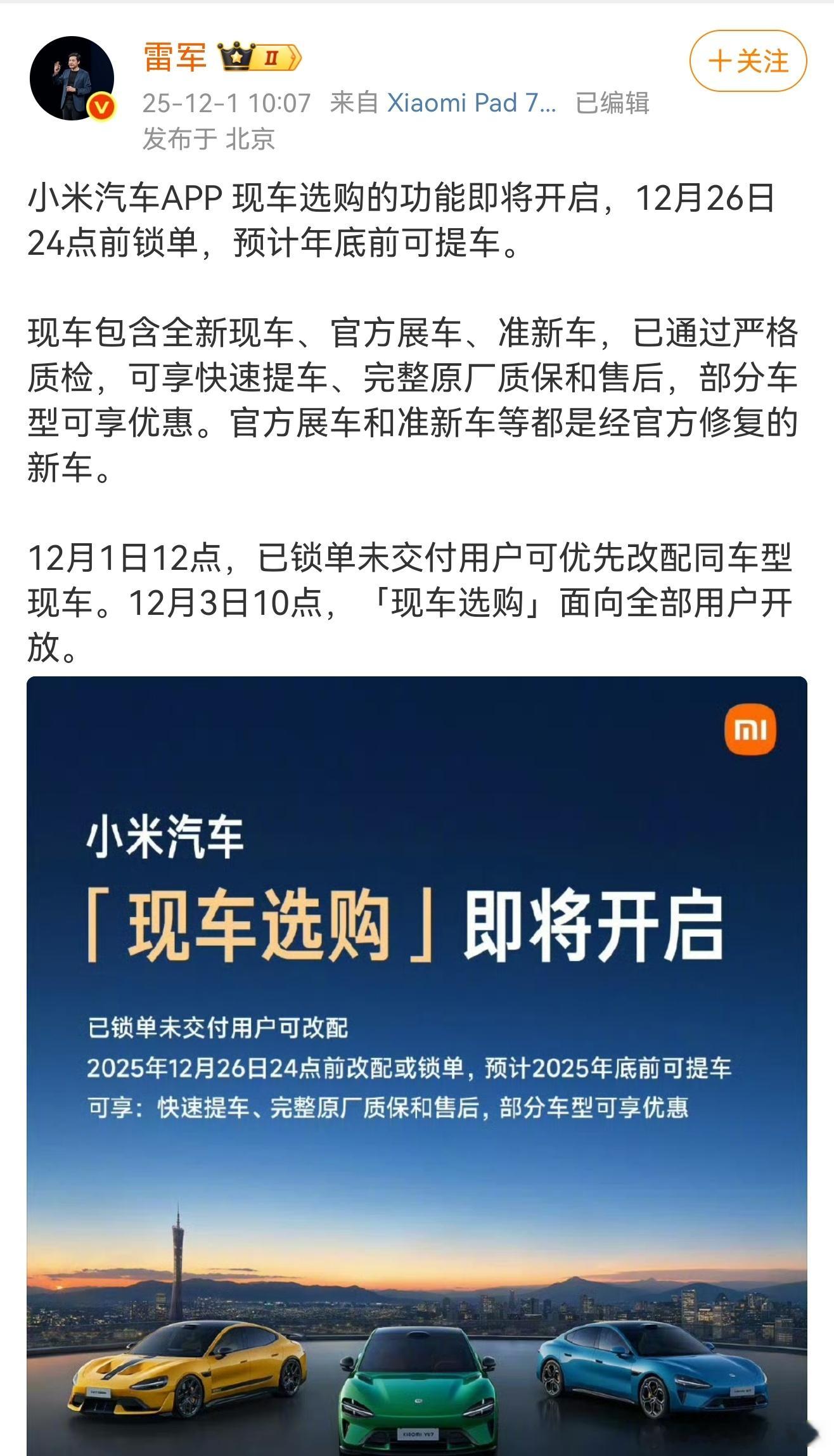 向大家汇报最新交付进展:截至今日,自2024年4月3日以来,小米汽车 累计交付已