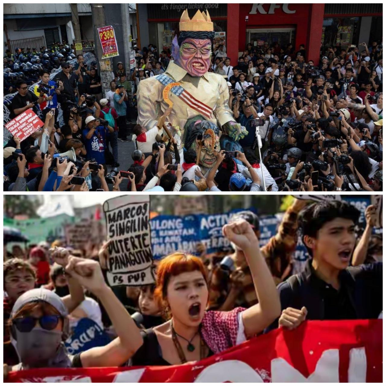 菲律宾总统马科斯为什么会面临群众不信任危机呢?原因是贪污腐败太严重了,已经达到丧心病狂的地步,对防洪工程进行偷工减料,这不是拿民众的生命开玩笑吗?而且是系统性的大规模贪污,可能贪官也觉得这样做不人道。索性就不搞这种面子工程了,干脆就只立项不施工,这样贪到手的钱更多,还不会因为质量问题出事,简直是一箭双雕。菲律宾有近1万项防洪工程存在质量问题,或者存在只立项不施工的“幽灵工程”,涉及金额近700亿元人民币。蛀虫长期没处理,胃口就会越来越大,这对社会的危害毋庸置疑,长期这样下去只会危及菲律宾的国本。另外,马科斯本人涉嫌贪腐,逃犯前众议员扎尔迪指控马科斯是防洪工程贪污案的核心参与者,收受了560亿的回扣。还强调自己曾亲自向马科斯运送了27箱现金,总计约10亿比索。他还附上两张照片,一张是27个塞满现金的行李箱,一张是列有付款信息的清单。马科斯至今未站出来澄清,可能是担忧越抹越黑。但也有观点认为是心虚的表现,其实消除负面影响的最佳办法是马科斯自证清白。马科斯还有一件麻烦事,他的姐姐伊梅·马科斯指控他为“习惯性吸毒者”。不过他们之间的政治立场不同,说出一些狠话也在情理之中。只是在涉嫌巨额贪污的情境下,人们对这个吸毒指控也不得不认真对待了。菲律宾全国20多个城市于9月21日爆发大规模反腐败抗议活动,要求彻查其责任。如今人们再次举行反腐败抗议活动,可见对其处理十分不满意。马科斯政府已经解释过了,案件正在深入调查,一切按程序进行中。按理说这么大的腐败案件不应该加快处理吗?虽说程序摆在那里,但是不可能没有加急的机制吧!总之,马科斯政府似乎并未将腐败案作为头等大事处理。