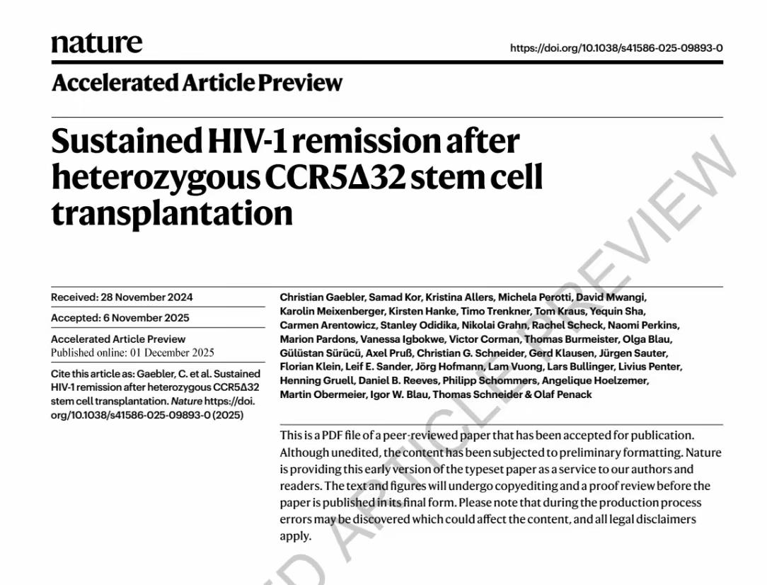 3. 全世界第七例艾滋病治愈者诞生 改写干细胞治愈艾滋规则:全球第七例艾滋病治愈者“柏林患者2号”,接受CCR5杂合突变干细胞移植,停药六年半未检测到病毒,打破需纯合突变旧观念。同期《自然》还发表抗体疗法激活自身免疫力、联合免疫策略是趋势的研究,标志艾滋病治愈研究进入新阶段。“柏林患者2号”的成功治愈,无疑为艾滋病治疗领域注入了一剂强心针。在此之前,纯合突变干细胞移植被认为是治愈艾滋病的关键,而此次“柏林患者2号”接受CCR5杂合突变干细胞移植并取得显著成效,改写了这一传统认知。这意味着未来在寻找合适供体时,范围将大大扩大,更多患者有了治愈的希望。 那篇发表在《自然》杂志上关于抗体疗法激活自身免疫力的研究同样意义非凡。联合免疫策略的提出,是科学家们在艾滋病治疗道路上的又一次大胆探索和创新。通过激活患者自身的免疫系统来对抗艾滋病病毒,这或许能减少对外部干预手段的依赖,降低治疗成本和副作用。 随着这些研究成果的问世,越来越多的科研团队开始将目光聚焦于此。他们纷纷加大投入,开展相关的临床试验和研究,试图进一步验证和完善这些新的治疗方法。相信在不久的将来,艾滋病治愈研究必将取得更多突破,为全球无数艾滋病患者带来新生的曙光。