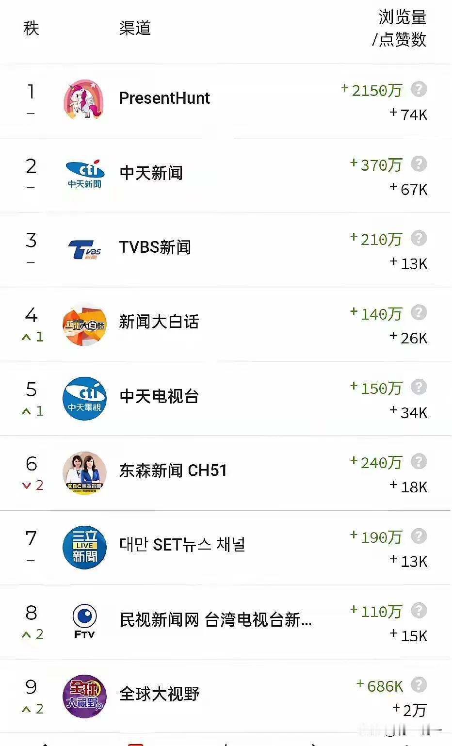 台湾电视新闻频道排行榜,看谁最受欢迎。