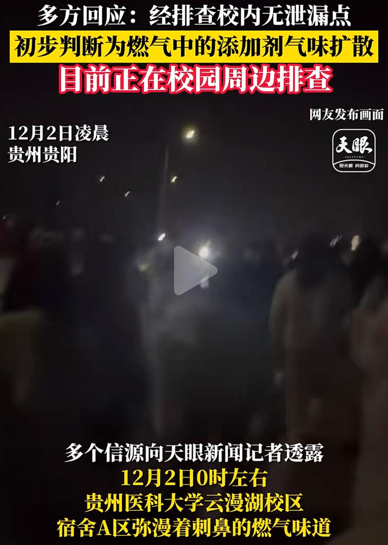 大半夜睡得正沉,突然被一股刺鼻味儿呛醒,紧接着就被喊着赶紧逃命——12月2日凌晨,贵州医科大学云漫湖校区的几千名学生,就经历了这么一场惊魂夜。 我光想想那场景就心疼,寒冬腊月的大半夜,学生们睡得迷迷糊糊,被叫醒时脑子都是懵的,又怕又慌,有的连外套都没穿够,裹着睡衣就往楼下跑,冷风一吹冻得直打哆嗦、牙齿打颤。校方说会点名,确保没人落下,可不少学生吐槽,通知乱得一塌糊涂,没人说清到底咋了,大家只能跟着人群瞎跑,心里越想越慌,生怕真的燃气泄漏出事儿。消防、公安还有燃气部门连夜赶过来排查,折腾到凌晨5点多,才让学生们慢慢回宿舍。 更让人闹心的是,说法越传越乱,前后根本对不上。一开始保卫处说A区燃气泄漏,结果后来又改口,说校内没查到漏点,气味可能是校外燃气添加剂飘过来的。可离得就200米的实验中学,压根没人闻到味儿,这波操作谁看了不疑惑?越含糊越让人心里没底,难免瞎猜。 虽说最后是虚惊一场,但也暴露了不少问题。现在高校管得越来越严,人脸识别门禁一套套的,可真遇到紧急情况,信息不同步、预案也不周全,连校外的风险都没联动排查。安全优先没错,但不能光有态度,得有实实在在的准备,演练别流于形式,信息别藏着掖着。希望学校好好复盘,把安全防线扎牢,别再让学生们大半夜受这惊吓、遭这冻罪了。刺鼻难闻气味 高校宿舍惊魂 贵州医科大