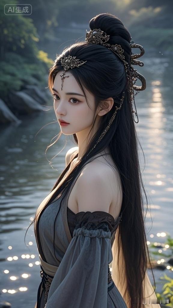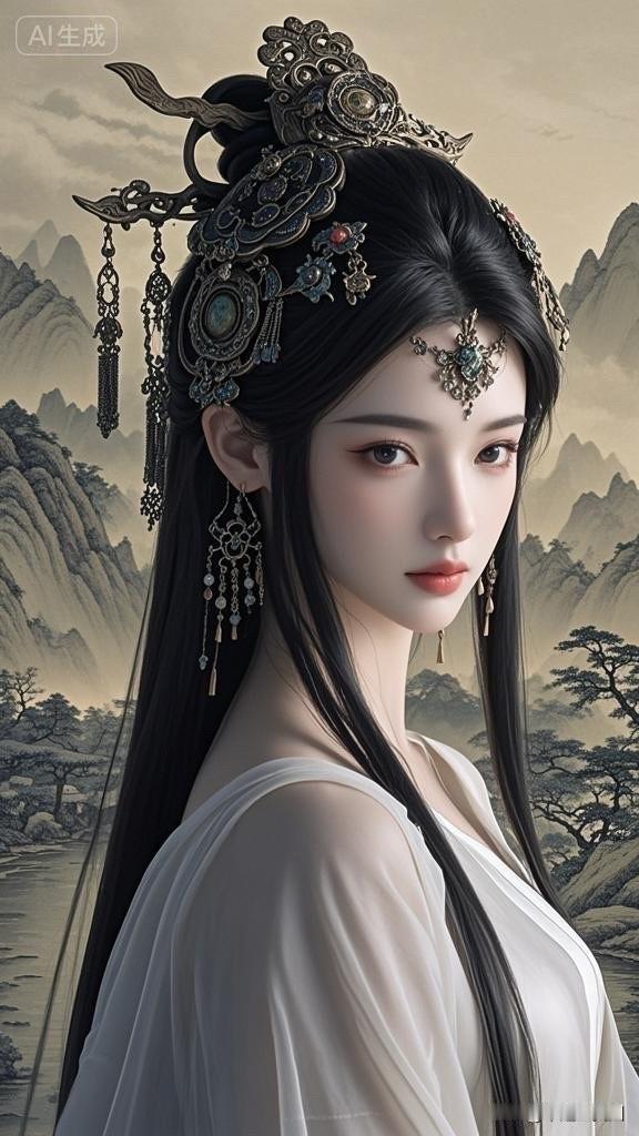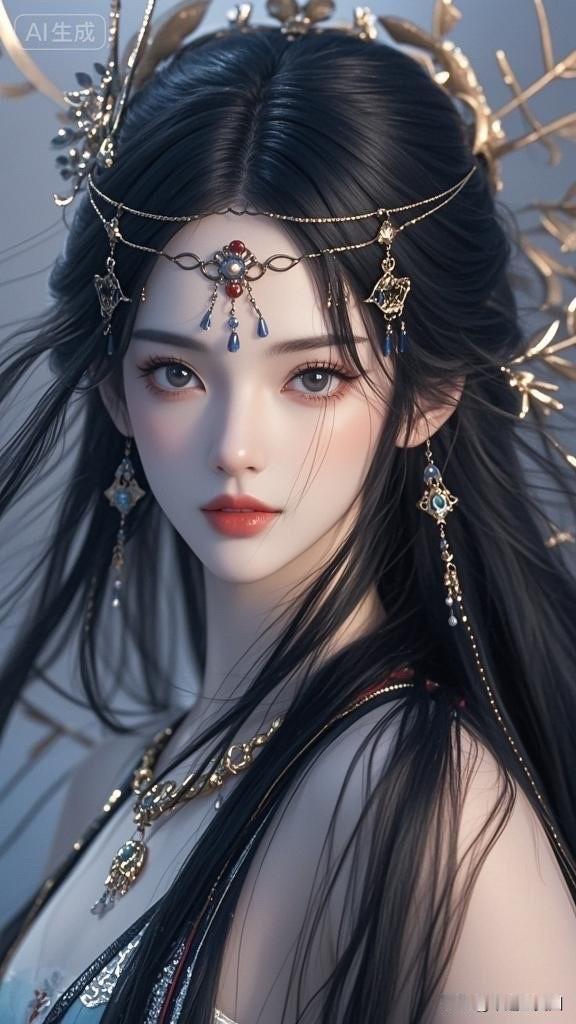 惊艳的东方美人,红唇与黑发相映成辉,优雅动人。