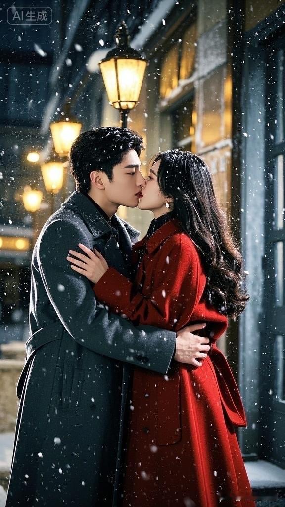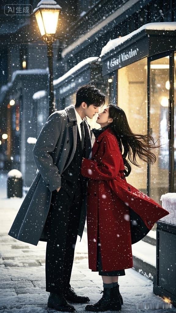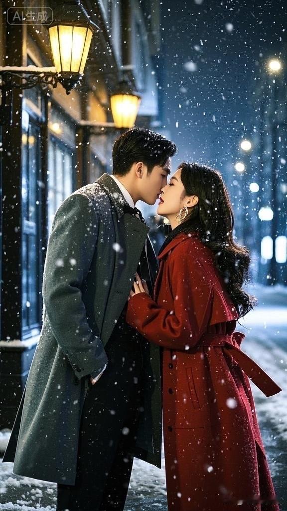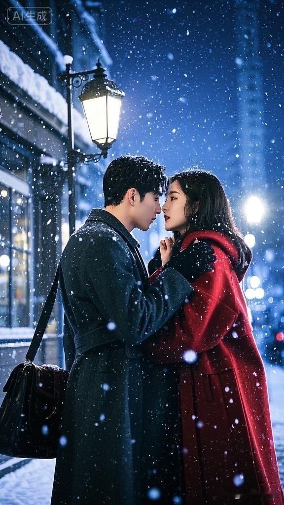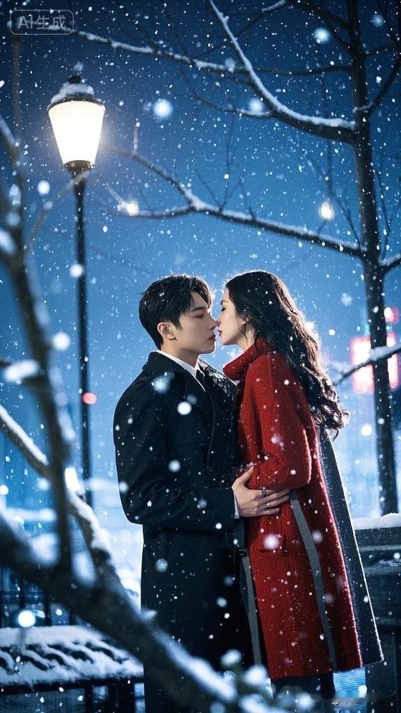 冬日浪漫,雪中相拥,暖心瞬间