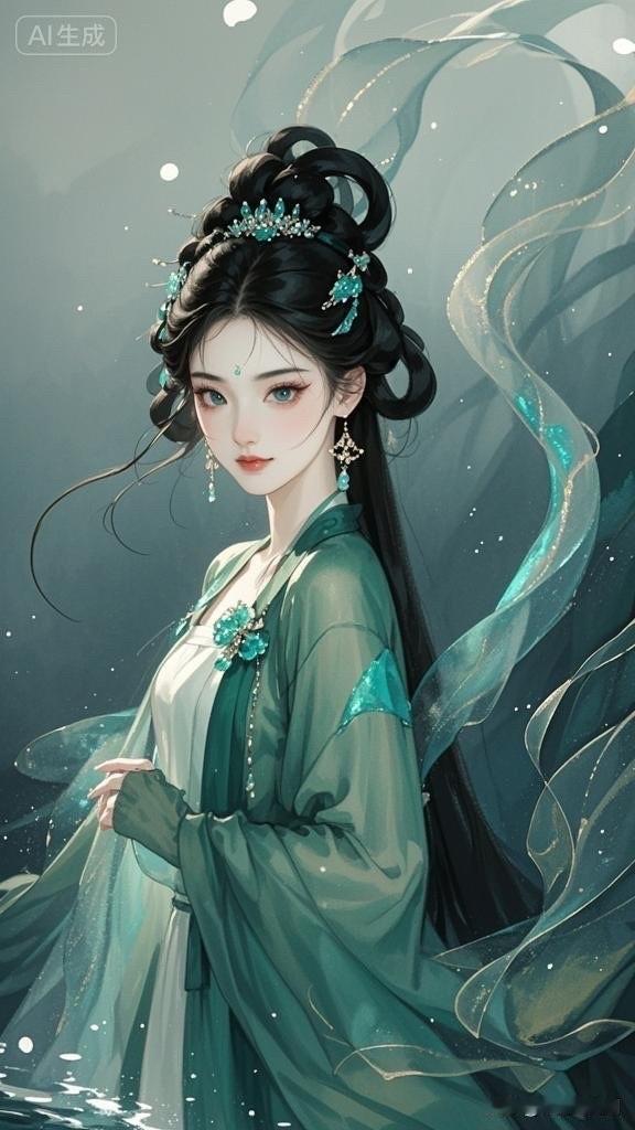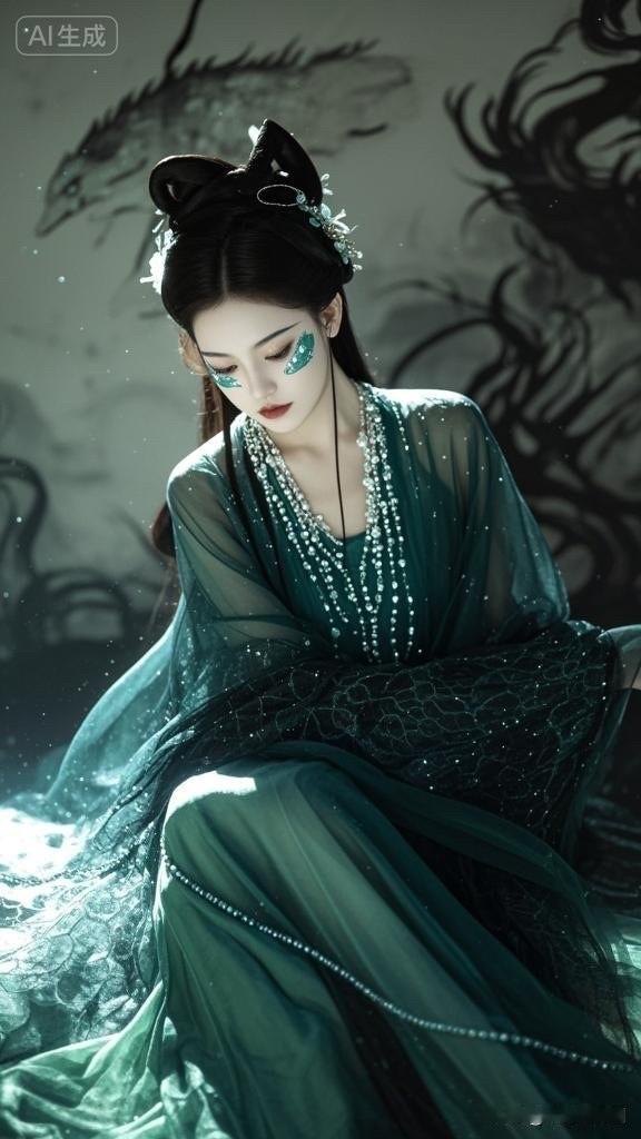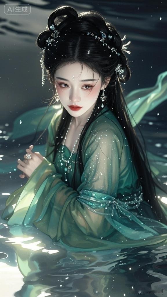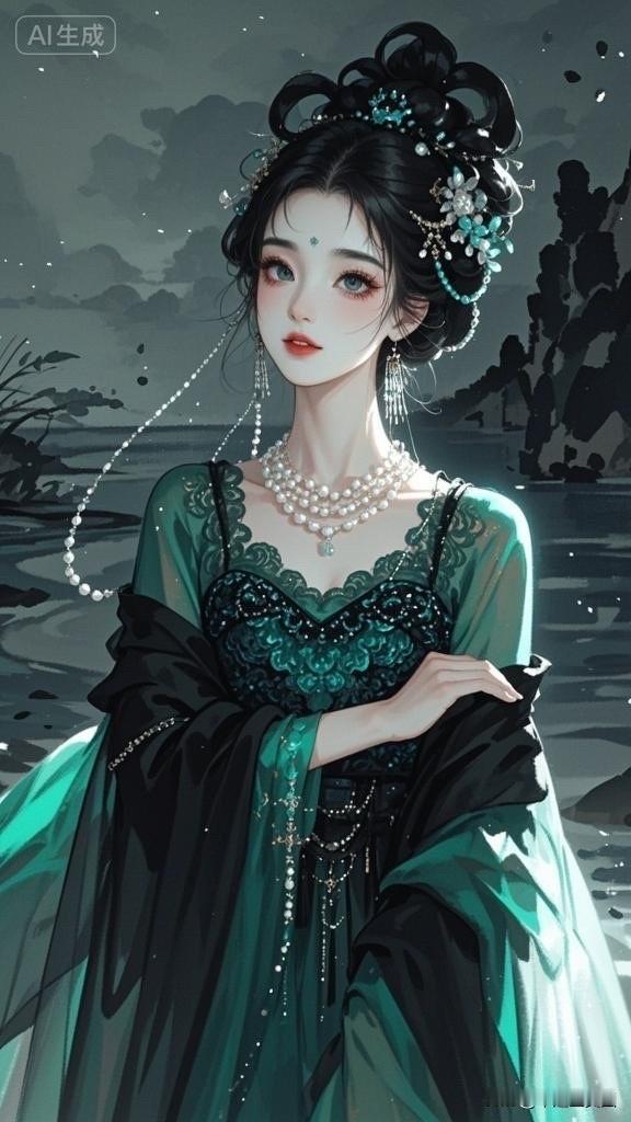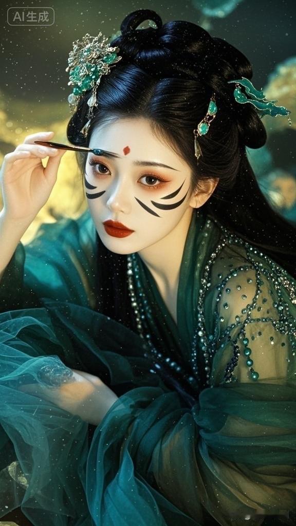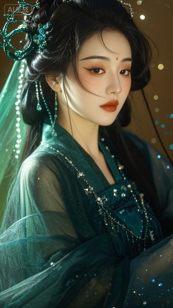 惊艳的东方美人,红唇与黑发相映成辉,优雅动人。