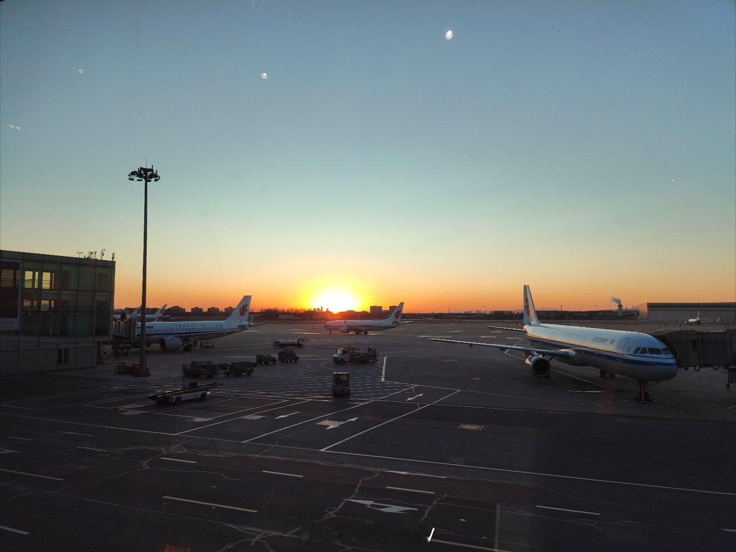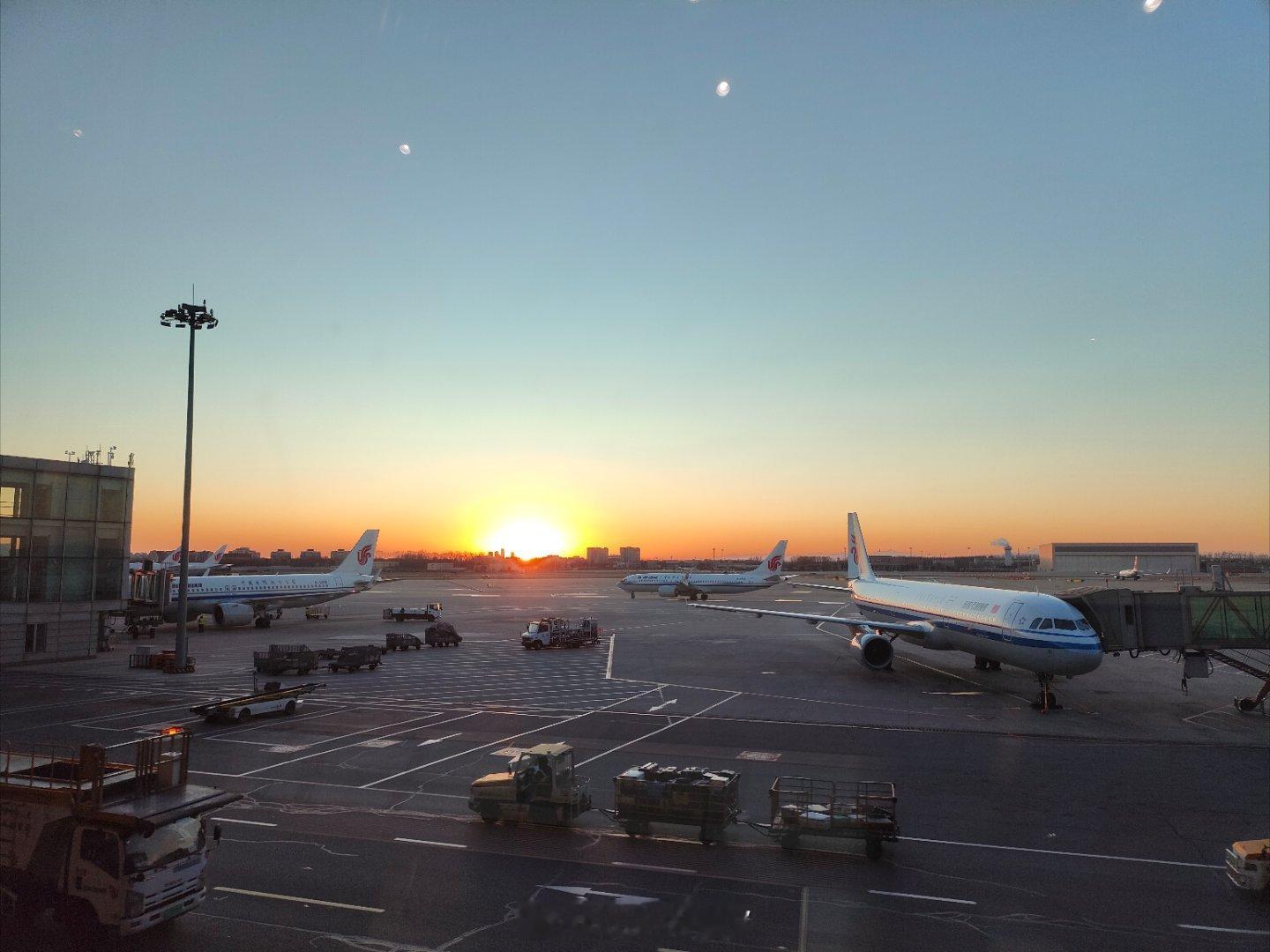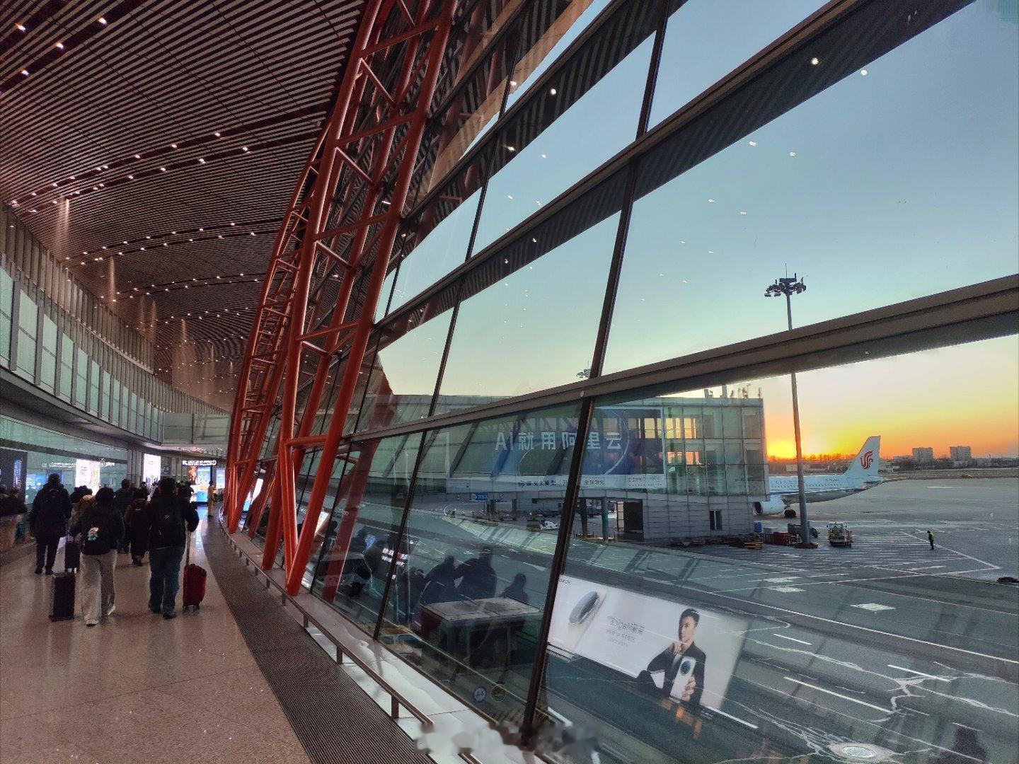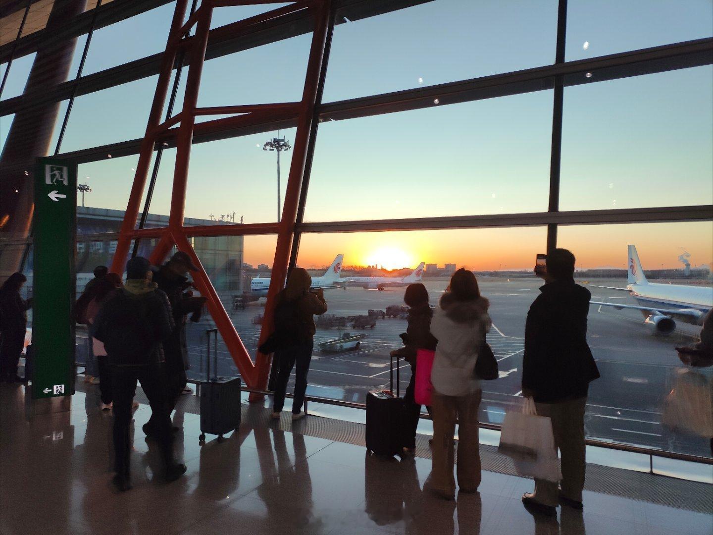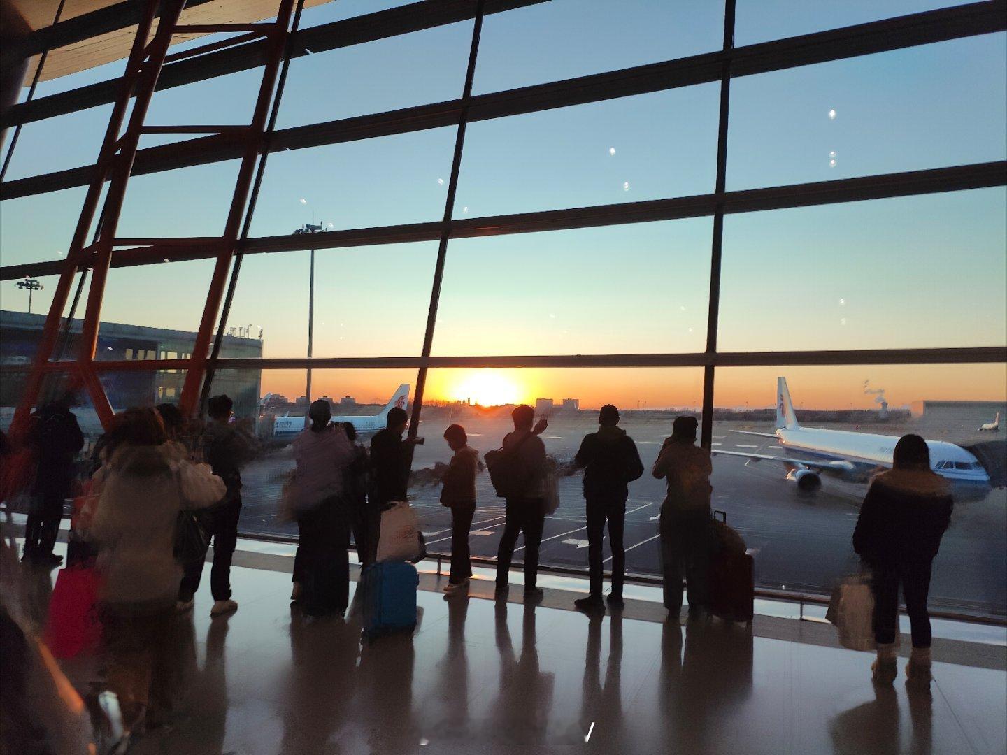 哈哈哈哈,一到首都机场就看见好多人在拍夕阳!就是一下子从温暖的广州来到了寒冷的北京,好冷啊,赶紧去加衣服 北京·首都机场T3航站楼