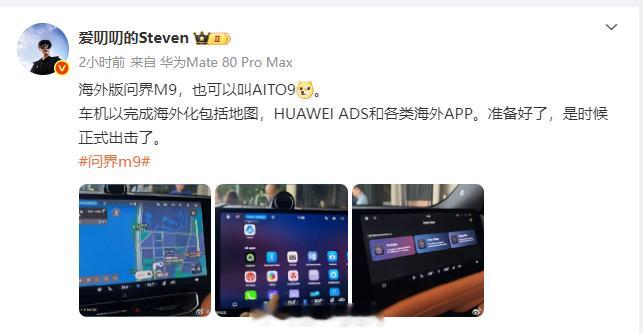 博主分享了海外版问界M9汽车的车机界面,透露车机已完成海外化,包括地图、华为 ADS和各类海外App,问界也要准备出海了?鸿蒙智行问界M9