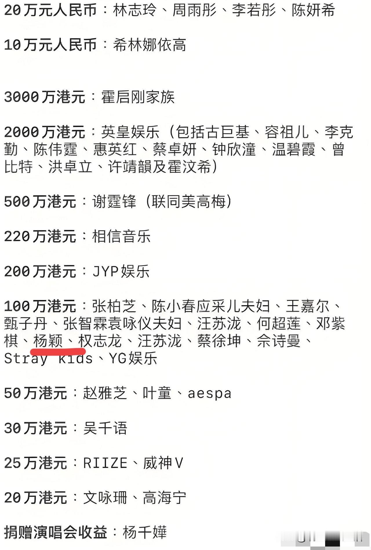 100万港币!Angelababy虽然事业一蹶不振,但在火灾面前大方捐款,好样的! 韩红基金会1000万,黄晓明基金会900万,刘亦菲150万,成毅100万,易烊千玺100万,霍启刚家族3000万港币,权志龙100万港币…… 一个人带娃的Angelababy算是半隐退了,甚至曾到一些小店站台的地步,明明这几年发展不顺,但捐款时不含糊,与那些当红艺人一样多!显而易见,她对香港有深厚感情! 当然爱心不分大小,有些艺人默默付出,善举并未公开。但杨颖多年来公益从未间断,如西藏地震捐发电机、涿州暴雨备物资等,而且不炒作、重实效,确实这善良发自本心! 为Angelababy点赞! 对此,您怎么认为的呢? MCN双量进阶计划