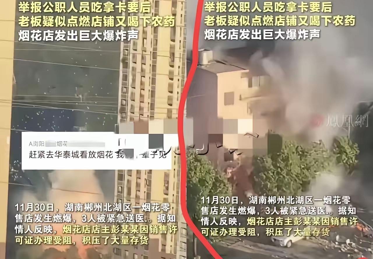 燃爆千万烟花再喝农药!谁把十年商户逼到以命相搏? 十年合规经营的底气,抵不过 一张办不下来的许可证 湖南老板囤积的千万烟花是半生积蓄,办证受阻后货物砸在手里,实名举报公职人员后,竟选择燃爆货物、喝下剧毒农药,这般决绝太让人心疼。 监管烟花爆竹是为了安全,但绝不能变成“卡脖子”的工具。“放管服”改革喊了这么久,简化流程不是空话,30个工作日的审批时限,更不该成为推诿扯皮的借口。 若举报的“人为设卡”属实,那不是监管是滥权;若流程真有瑕疵,也该给经营者顺畅的诉求渠道。 极端行为不可取,但背后的绝望值得警惕。审批透明、维权有路,才不会有人被逼到绝路。你觉得该如何避免类似悲剧?