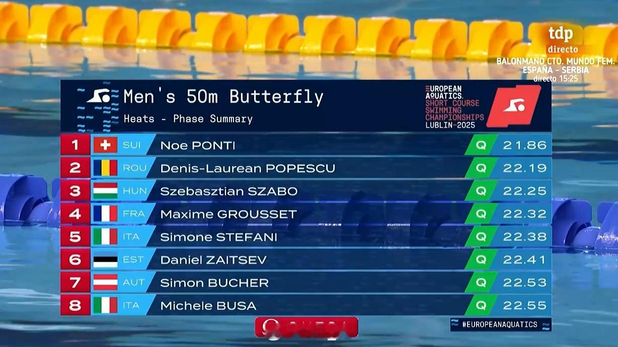 欧洲短池游泳锦标赛 男50蝶预赛Ponti 21.86