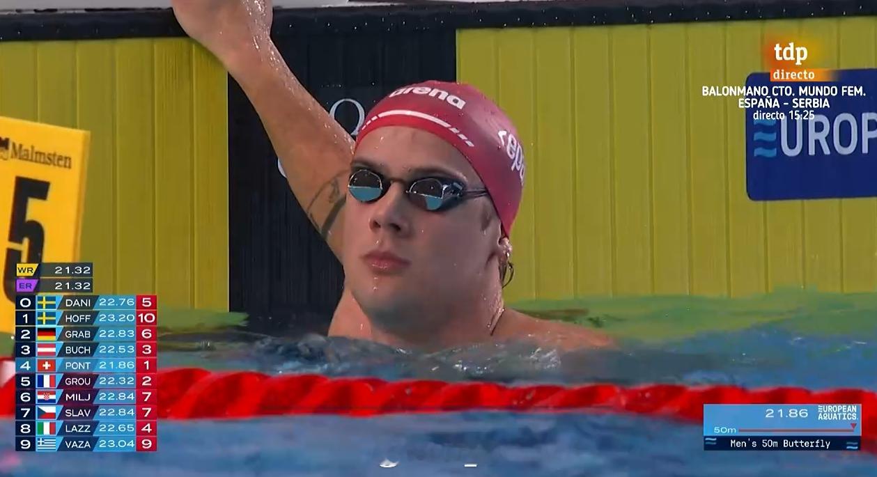 欧洲短池游泳锦标赛男50蝶预赛Ponti21.86