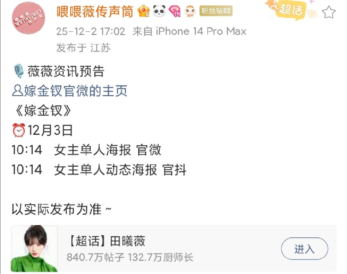 嫁金钗田曦薇海报田曦薇嫁金钗将官宣嫁金钗田曦薇海报要来了啊啊啊