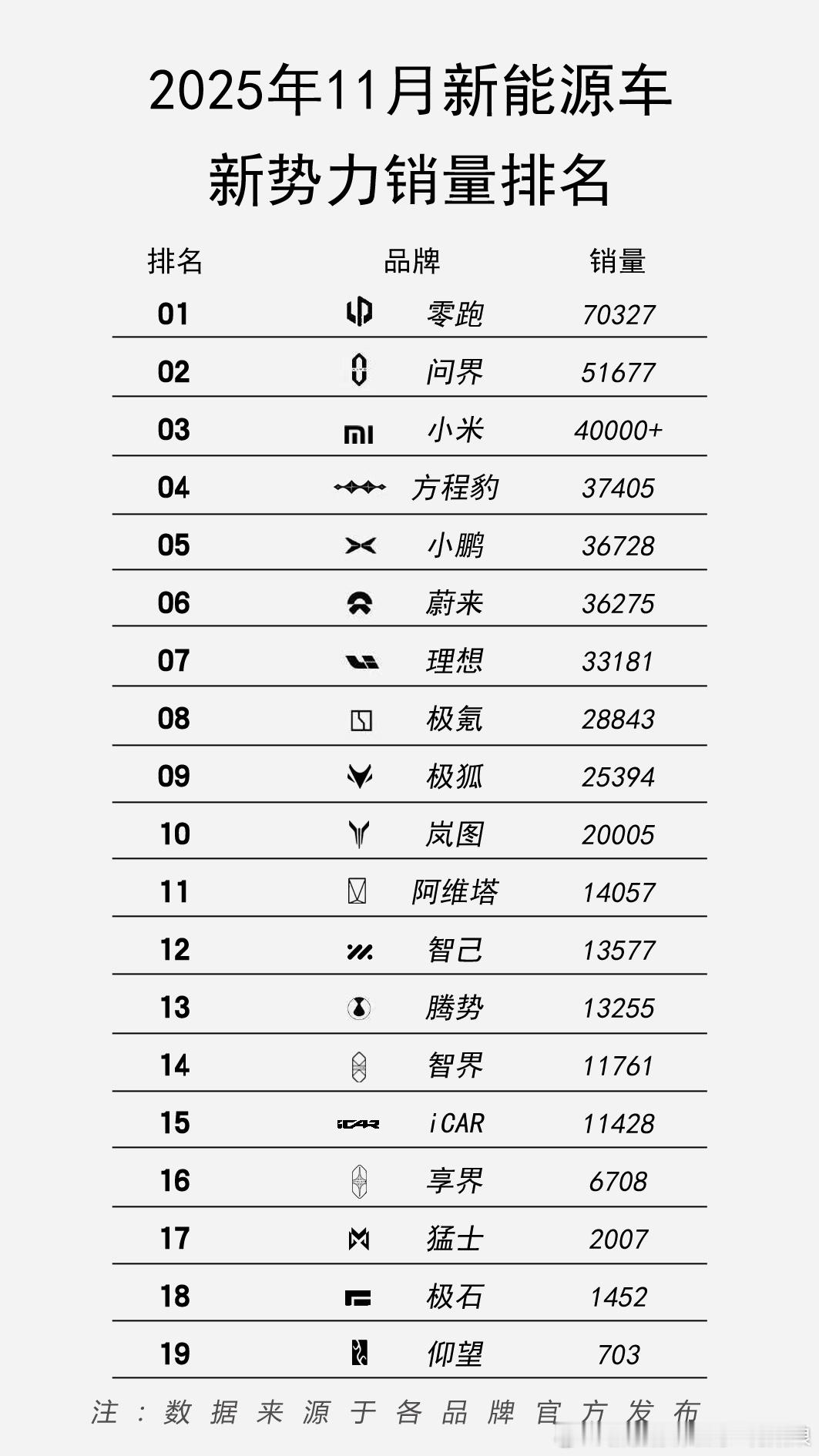 11月几个相邻的数字方程豹(37405)小鹏(36728)蔚来(36275)海狮06(35081)理想(33181)奇瑞海外销量(13.67)长城海内外销量(13.32)比亚迪海外销量(13.17)以为是爆雷了,原来是爆单了期待第1500万辆和海外本年度第100万辆下线。比亚迪蔚来小鹏汽车理想汽车大v聊车新能源大牛说