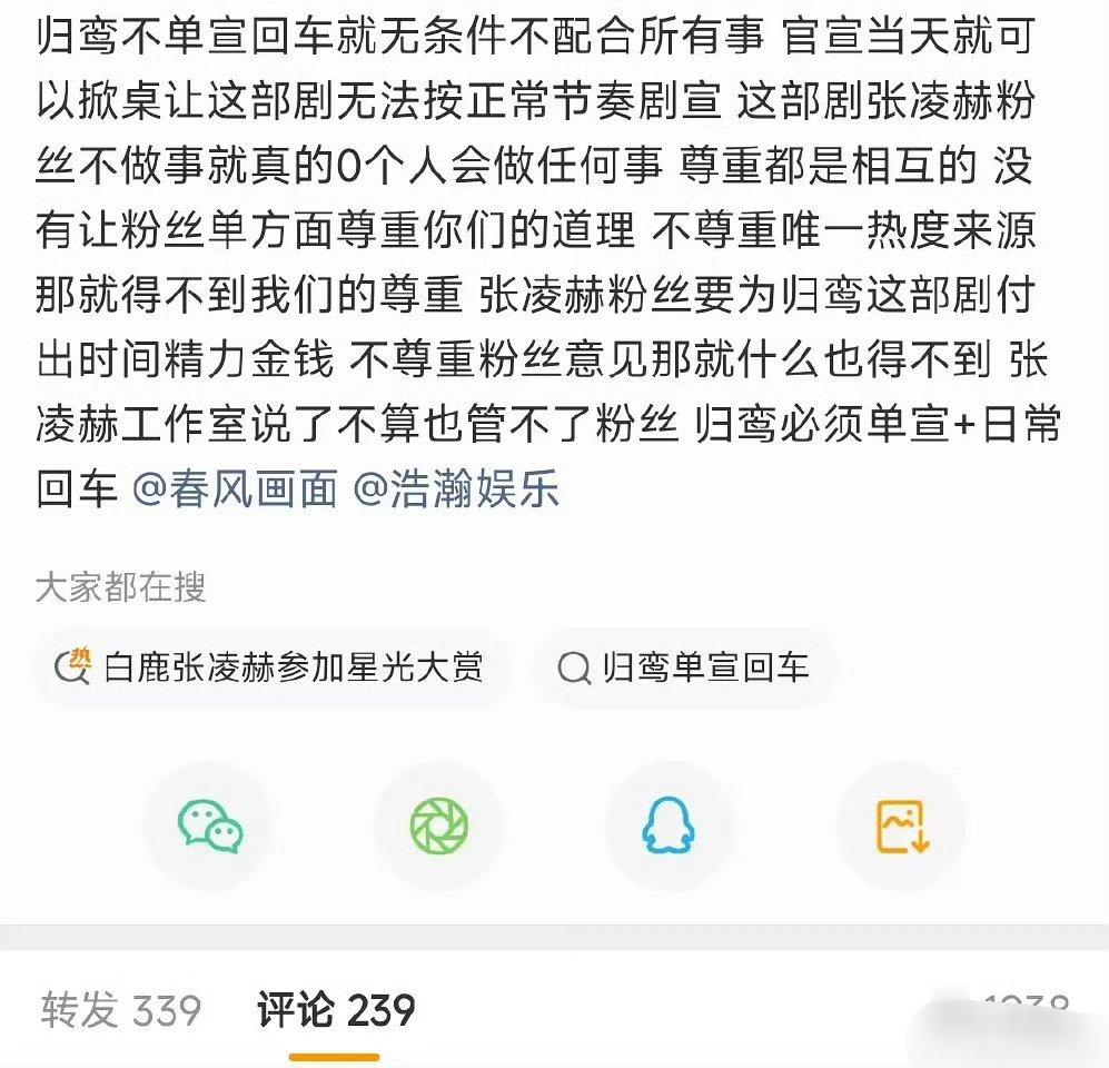 张凌赫粉丝要求《归鸾》单宣,且回车