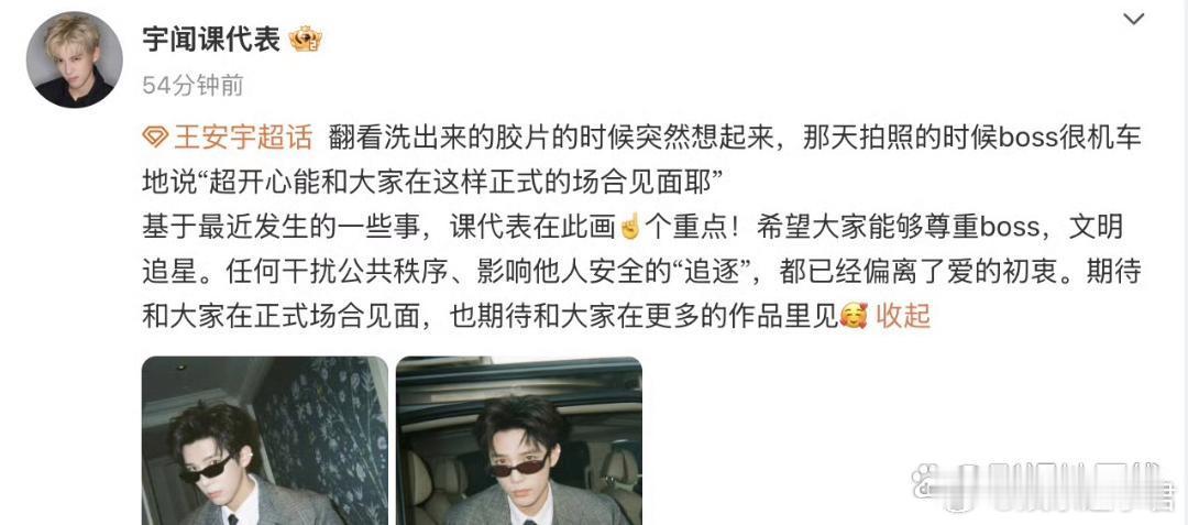王安宇方晒出王安宇的胶片照片,回忆安宇曾在正式场合说 “超开心能和大家在这样正式的场合见面”。