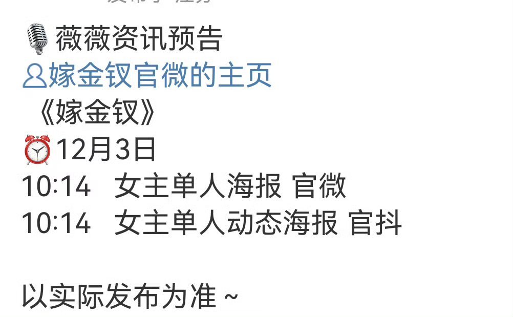 田曦薇《嫁金钗》明天单人海报官宣!!