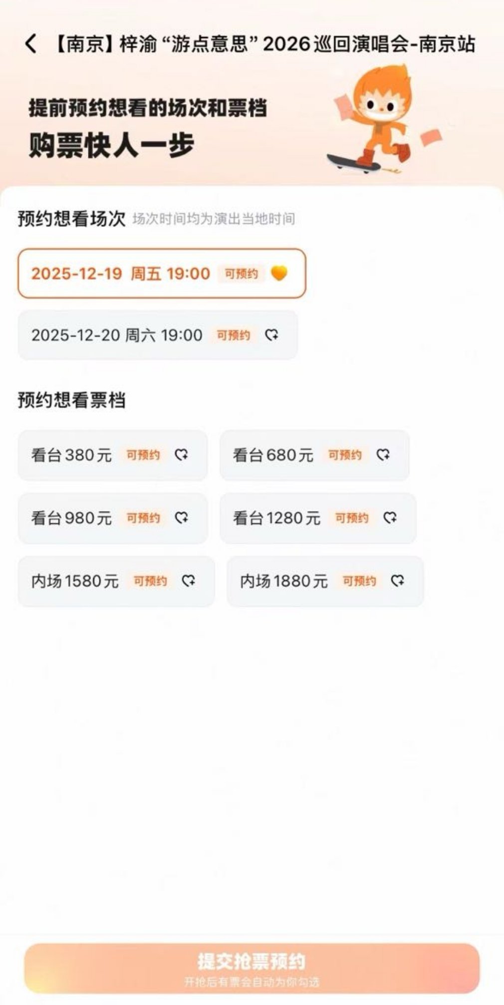 梓渝演唱会价格
