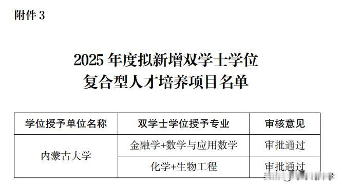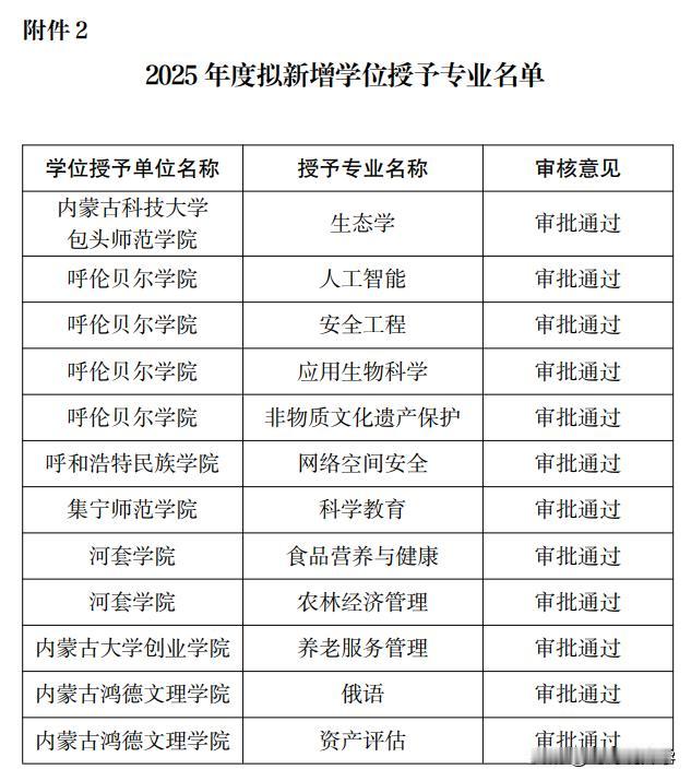 🔥内蒙古的宝子们速看!教育厅拟新增 29 个学士学位专业,你的专业上榜没? 宝子们!老话说 “机会是留给有准备的人”,今天内蒙古教育厅直接送来了一波升学 / 就业大福利 —— 拟增列 29 个学士学位授权专业,还有双学位项目同步公示!这波必须码住! 事件详情 近日内蒙古自治区教育厅发布公示:根据学位管理办法,经过学校自评、形式审查、专家组评审等严格环节,拟新增 29 个学士学位授权专业,同时公示双学士学位复合型人才培养项目名单(具体名单可去教育厅官网查哦~)。 我的个人看法 💡这事儿对咱们太重要了!新增专业意味着: 选专业多了新方向:不管是高考生、专升本还是考研党,以后选专业时又多了 29 个合规选项,尤其可能包含一些新兴领域(比如 AI、新能源、跨境电商等)的专业,直接对接未来热门岗位! 学历含金量升级:如果你的学校刚好有专业新增学士学位授权,那你的学历认可度会更高,找工作 / 考公更有优势! 双学位机会来了:复合型人才培养项目能让你同时学两个专业,比如 “计算机 + 英语”“金融 + 法学”,职场竞争力直接拉满! 互动提问 🤔你们觉得新增专业里哪个领域最有前景?或者你的专业在公示名单里吗?评论区聊一聊,一起挖宝藏专业! 内蒙古教育 学士学位 新增专业 升学规划 教育资讯 双学位 大学生福利