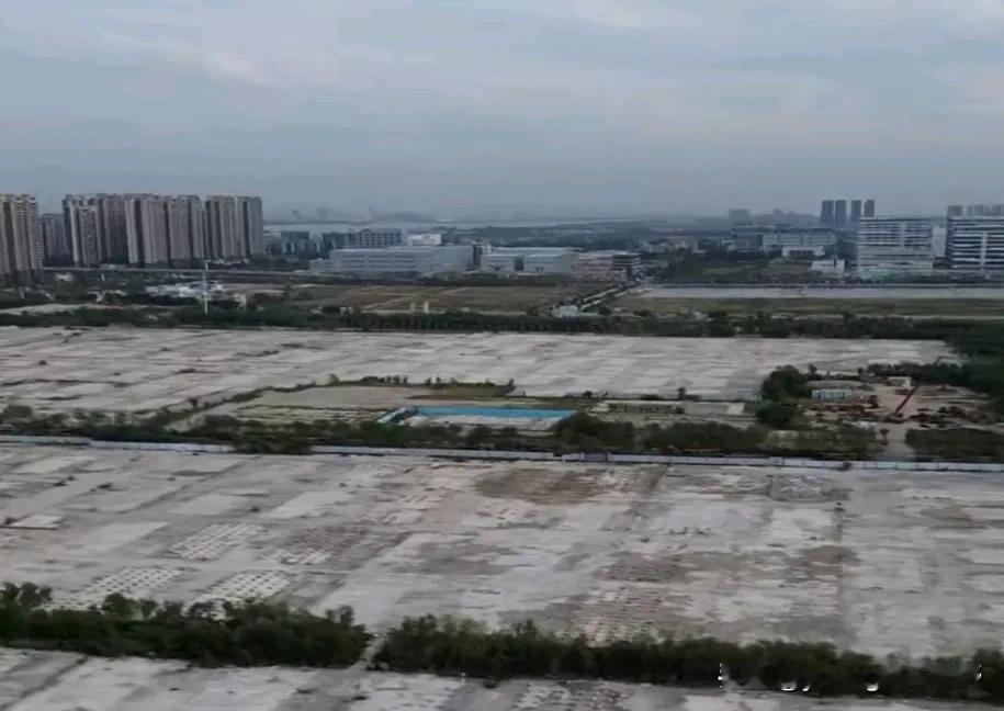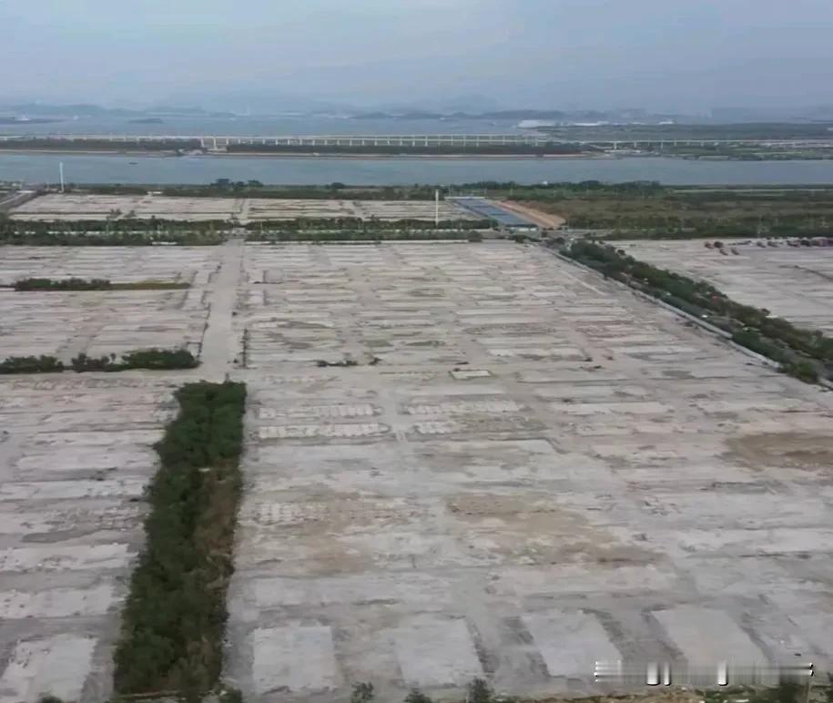 广州南沙万顷沙红莲大桥旁,这一大块的空地,就是当年广州南沙的方舱医院基地。当年在这里建设了上千座方舱房屋,用以应对那时的突发情况。如今方舱已经拆除,留下了这大片开阔的待开发土地。