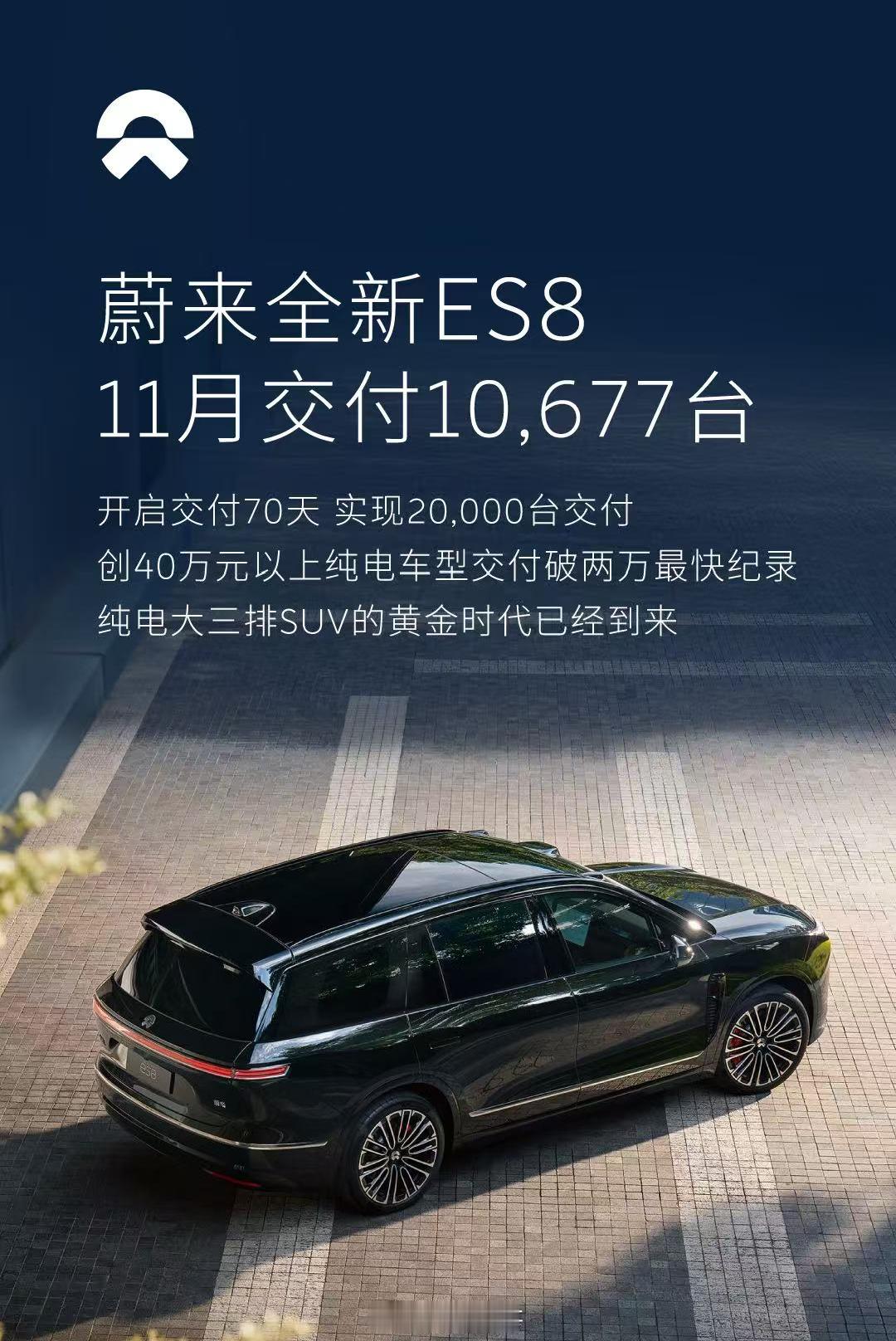 蔚来全新ES8 这交付速度可以的,11月交付新车10,677台,基本就实锤了手里大批的订单数。上市41天,交付就冲破了1万台,第70天,成功交付第20,000台新车,创下40万元以上纯电车型交付破两万最快纪录。高端纯电,蔚来是铁了心要坚持走下去。蔚来蔚来全新ES8