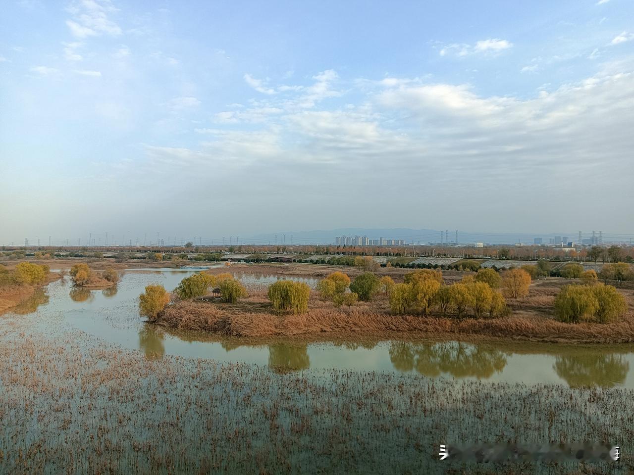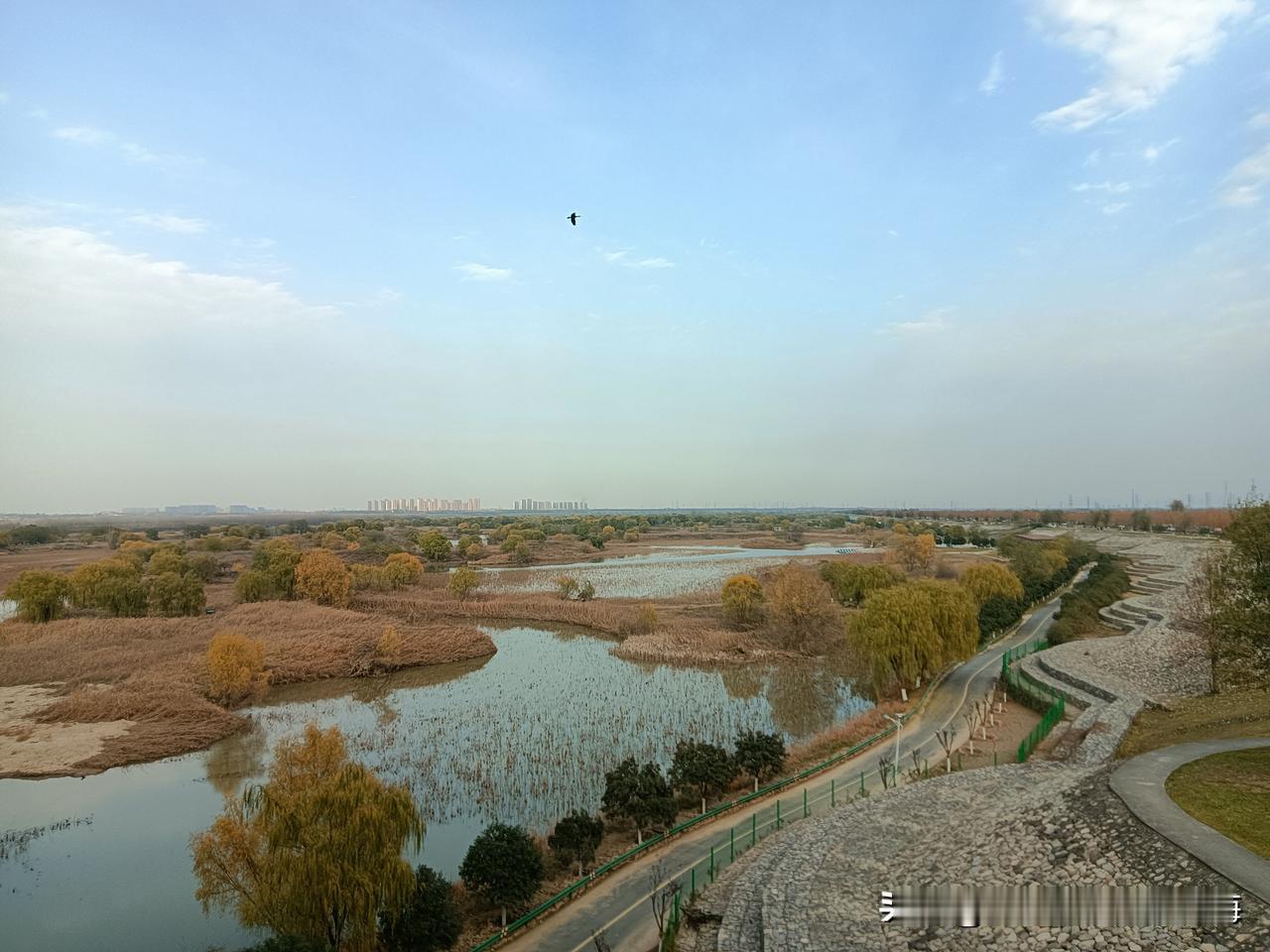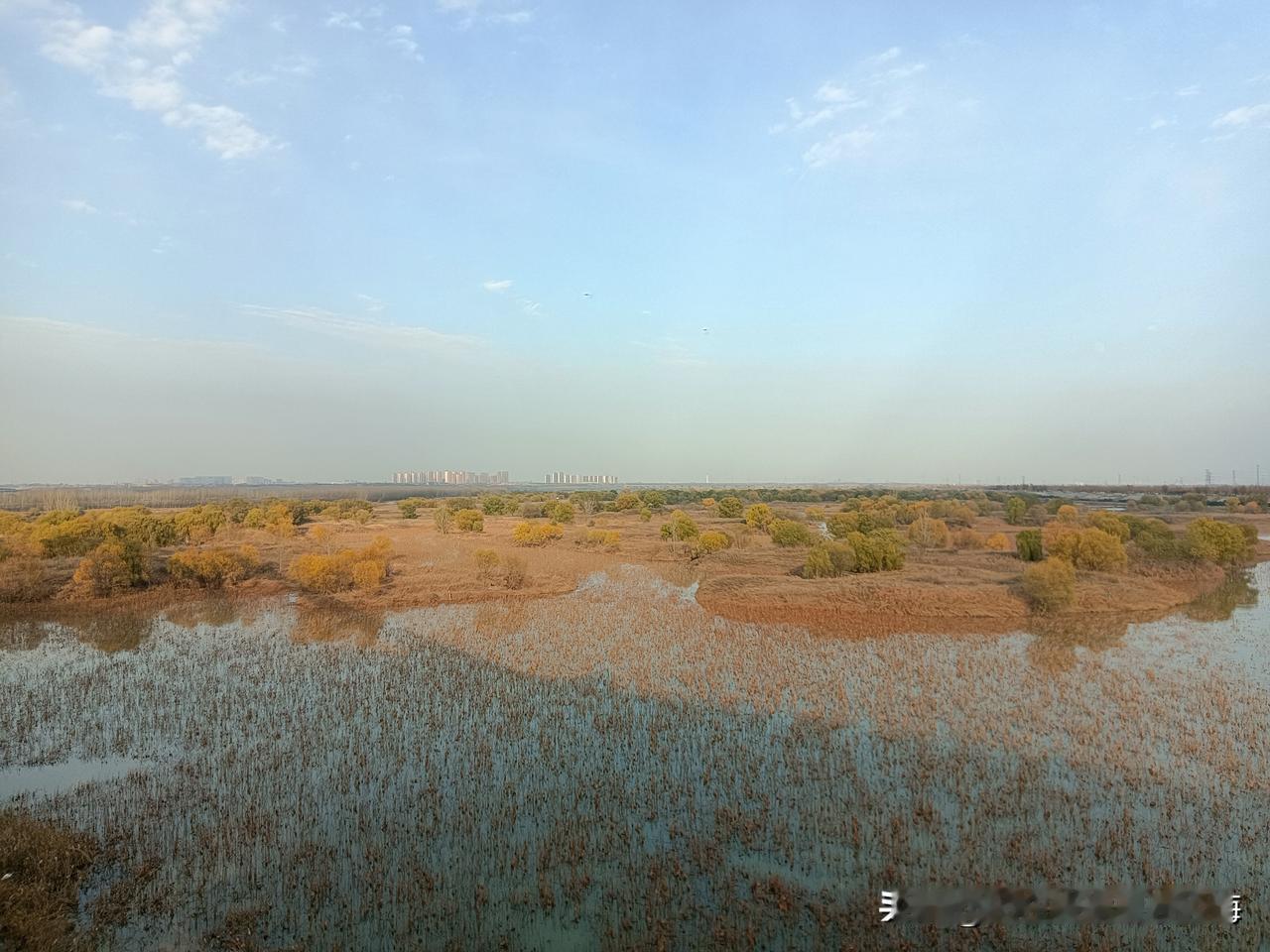 这是我今天在地铁10号线跨渭河大桥上走拍的“全息影像图”!深冬的渭河滩地已尽枯黄色调,蓝天白云下的骊山山恋朦朦眬昽!桥面上桥底下风速不大偶尔有骑行者闪过,夏季可见的大片大片的荷塘叶带也呈凋零之势!因为天气降了温桥上几乎空洞无人,我独自从桥东一侧逛到桥西,放眼望去傍晚时分天尽黄昏,一轮天边的落日正伴随着染红的天际线让我目视着送走河堤晚霞!分享一张你最近随拍的照片 渭河风景带 西安河堤路风光 美景风景随手拍 原创美景随手拍 旅行碎片随手拍 旅途美拍风景 随拍图