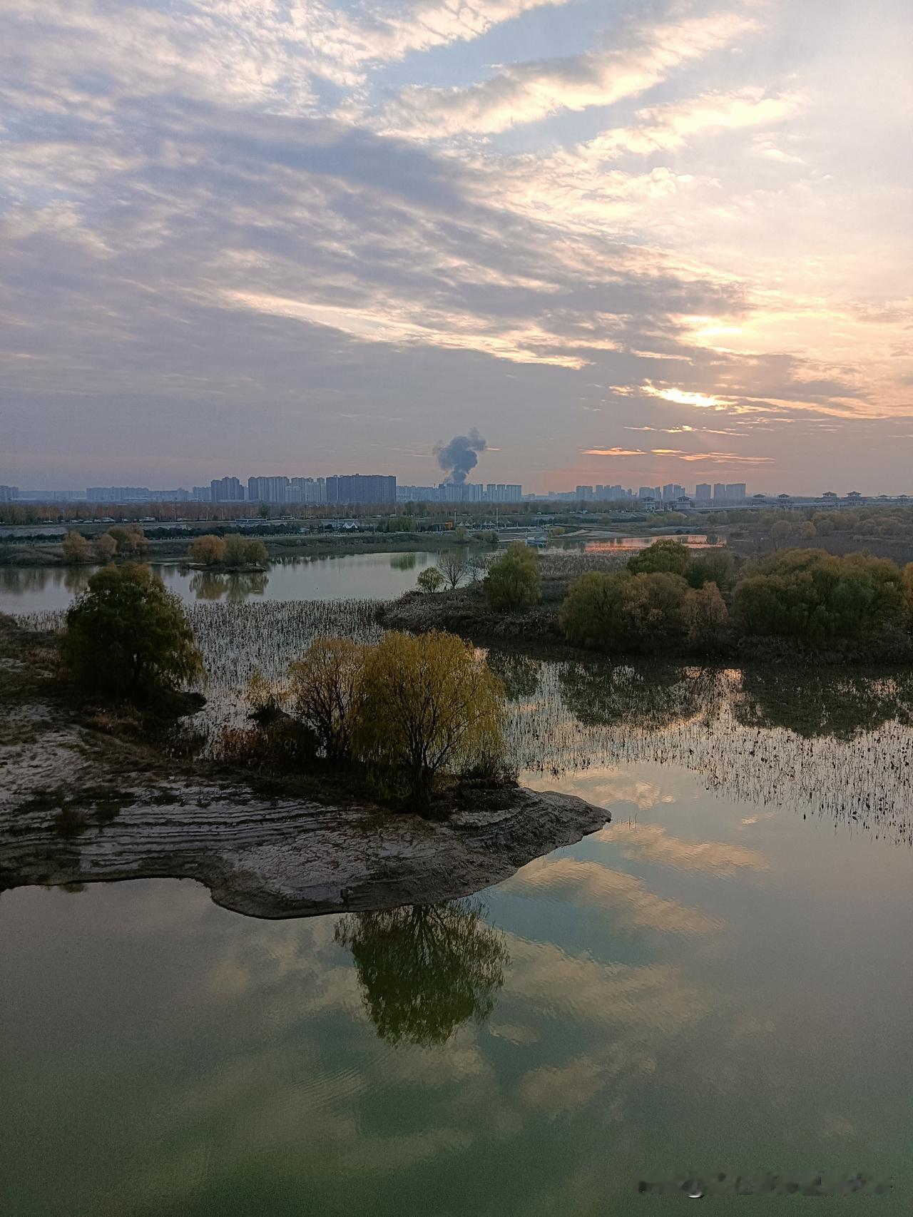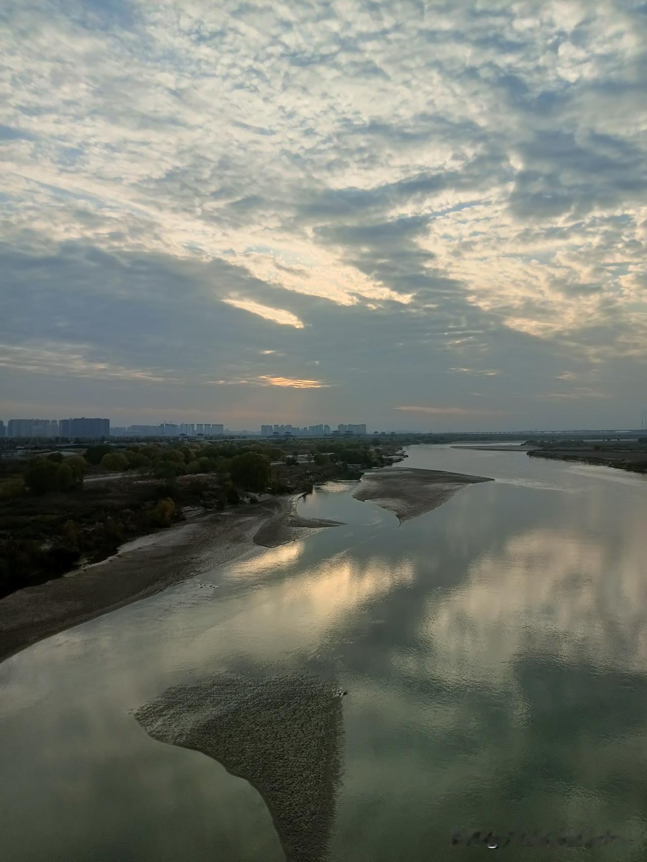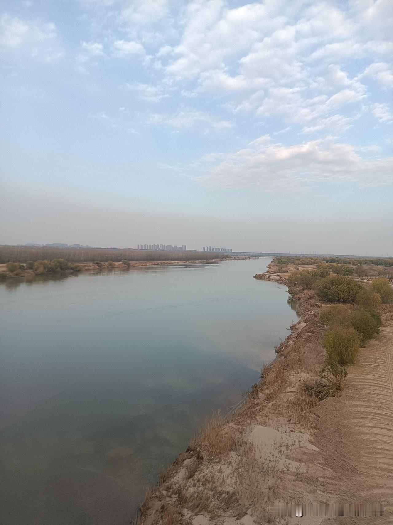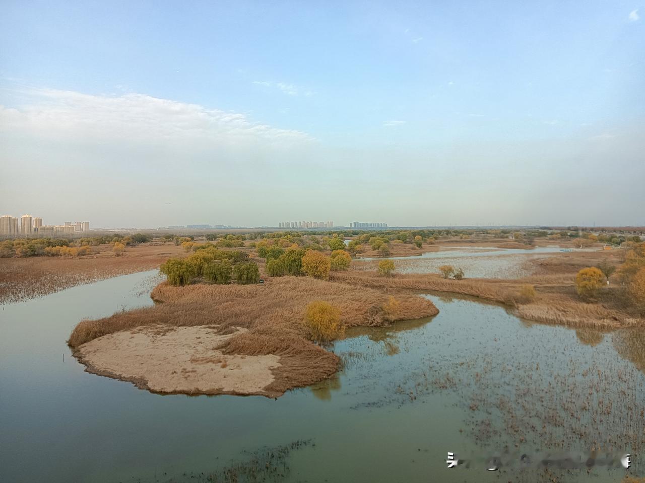 这是我今天在地铁10号线跨渭河大桥上走拍的“全息影像图”!深冬的渭河滩地已尽枯黄色调,蓝天白云下的骊山山恋朦朦眬昽!桥面上桥底下风速不大偶尔有骑行者闪过,夏季可见的大片大片的荷塘叶带也呈凋零之势!因为天气降了温桥上几乎空洞无人,我独自从桥东一侧逛到桥西,放眼望去傍晚时分天尽黄昏,一轮天边的落日正伴随着染红的天际线让我目视着送走河堤晚霞!分享一张你最近随拍的照片 渭河风景带 西安河堤路风光 美景风景随手拍 原创美景随手拍 旅行碎片随手拍 旅途美拍风景 随拍图