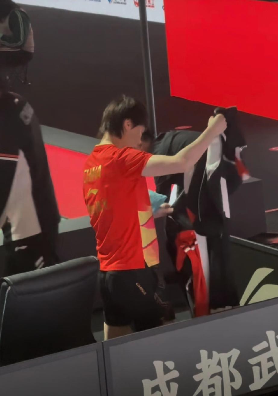 王曼昱穿错梁靖崑裤子,发现腰围太大像水桶!拜托王楚钦帮忙找裤子! 成都混合团体世