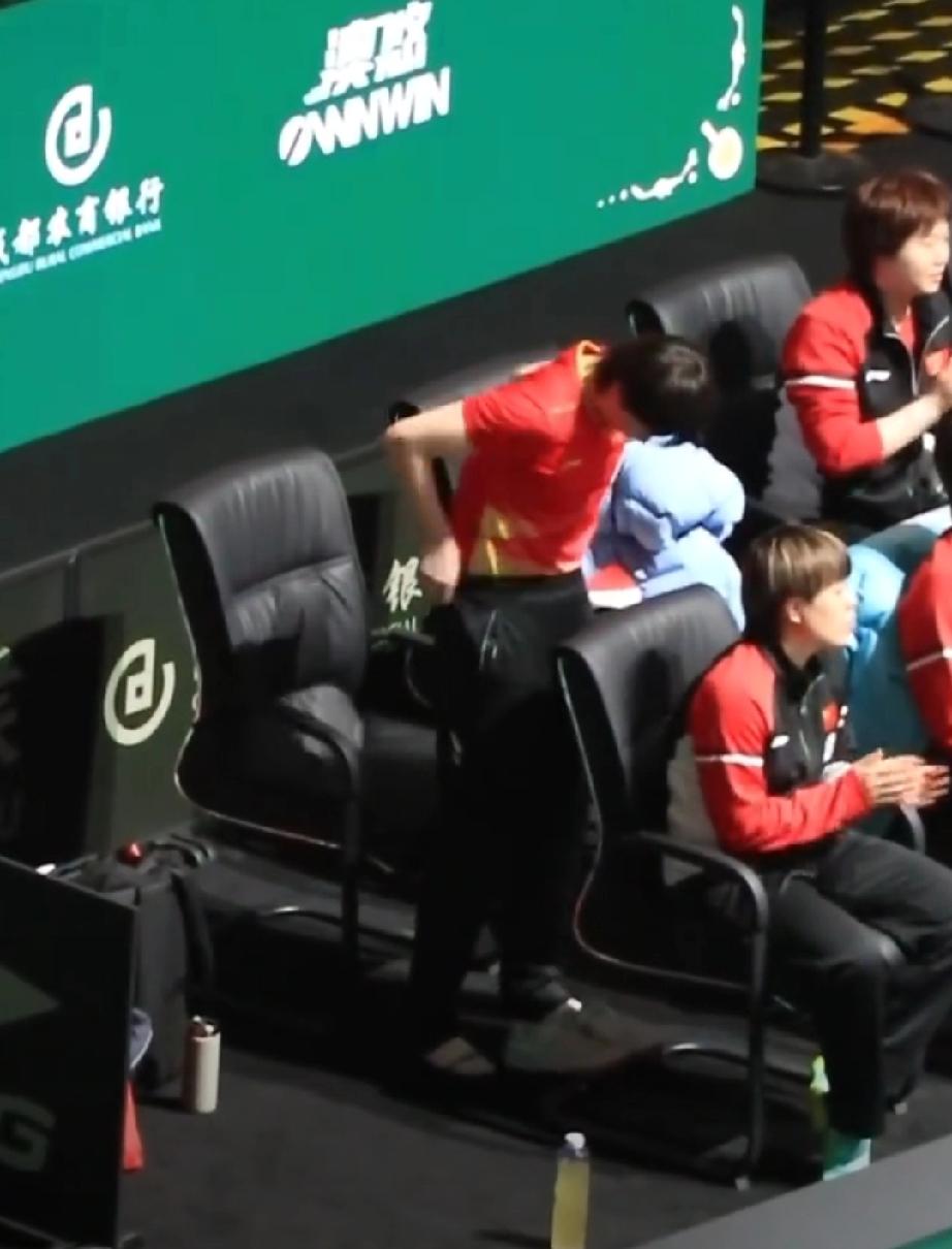 王曼昱穿错梁靖崑裤子,发现腰围太大像水桶!拜托王楚钦帮忙找裤子! 成都混合团体世界杯正赛第三日国乒队员发生的有趣小插曲! 女单上场干净利索3-0拿下对手的王曼昱下场后一直寻找自己的长裤,找了半天穿上发现腰围太大,像个桶一样把自己兜住,这一看就是正在场上打男单的梁靖崑的裤子! 搞得曼昱哭笑不得,蒯曼和王艺迪也一起笑曼昱。 实在找不到自己裤子的曼昱只好求助王楚钦,因为是王楚钦把当时放在座椅上的裤子为了腾出座位,放在了一边。只有他知道到底放哪里了! 王楚钦果然帮王曼昱在角落里找到了自己的裤子。 曼昱终于穿上了自己的裤子! 国乒搞笑小插曲由此结束! 要是梁靖崑比赛下来知道王曼昱穿了自己裤子不知道啥感受!估计也是哭笑不得! 这回不算曼昱糊涂,这回是头哥不靠谱,把人家裤子放到找不到的地方了!头哥罚三杯!