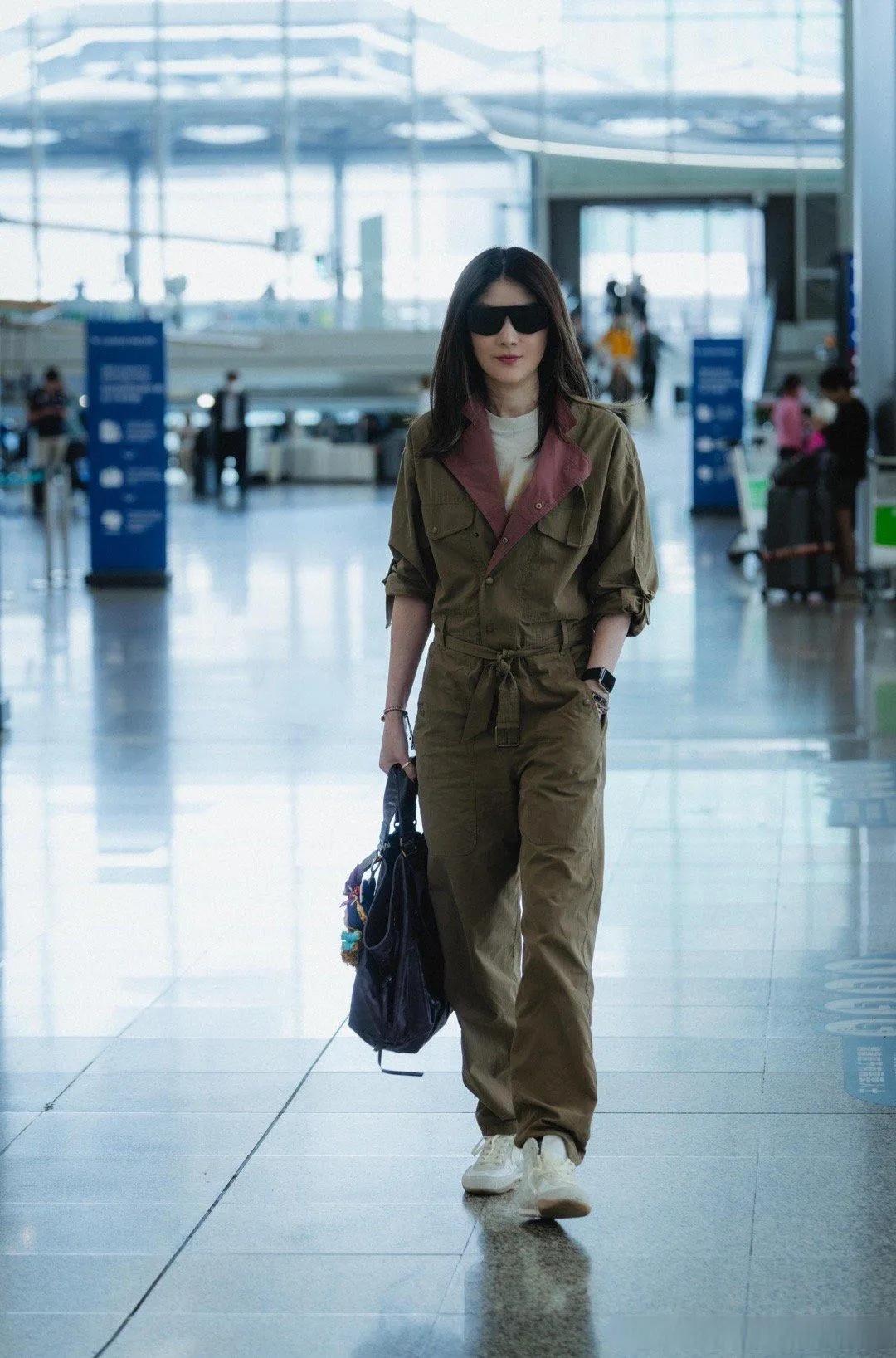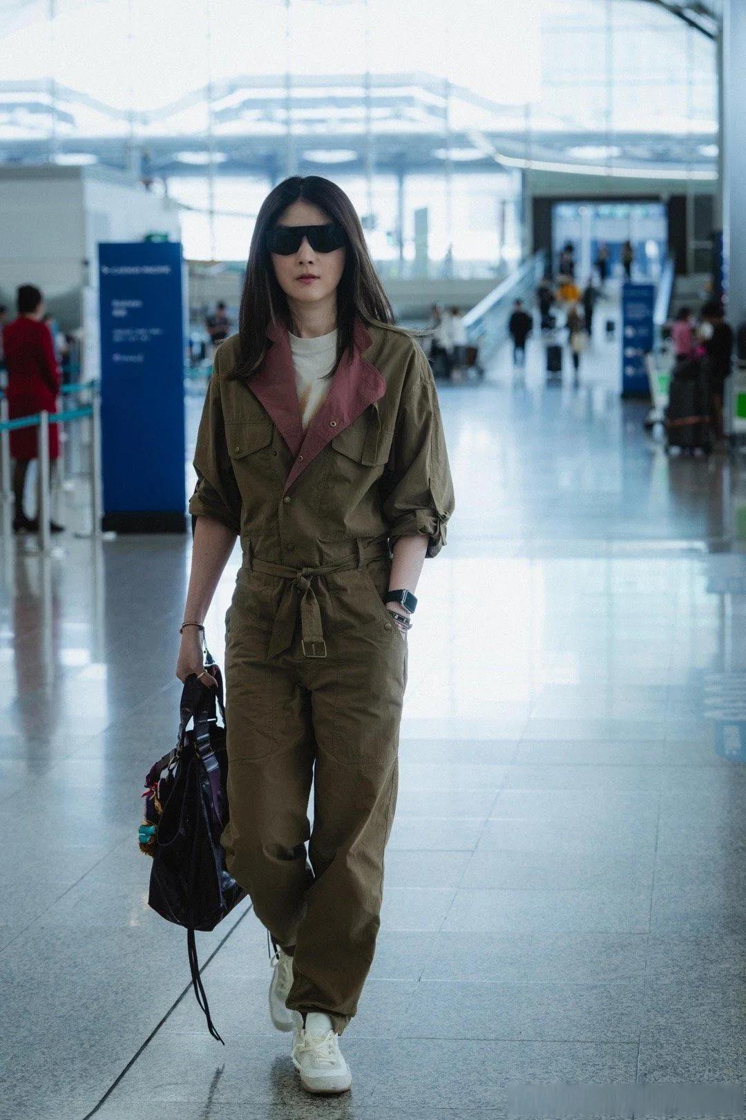 【陈慧琳机场路透好飒!工装连体裤穿出松弛高级感】 谁能看出来陈慧琳已经52岁了?机场这套穿搭直接杀疯! 卡其色工装连体裤+酒红翻领撞色,束腰设计刚好掐出腰线,袖口卷边随性又利落;搭配白球鞋+深色挎包,墨镜一戴气场拉满,松弛感和时髦度直接焊在身上! 这状态说是三十岁出头都信,姐姐的时尚sense真的从不让人失望~