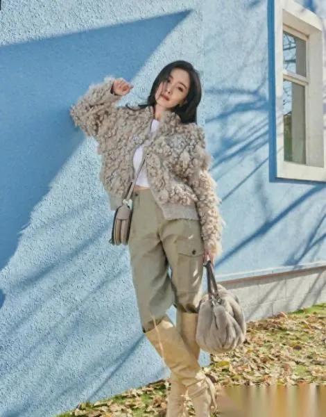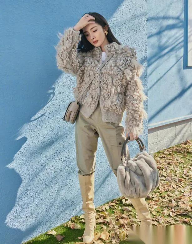 【杨幂秋日毛绒穿搭杀疯!软fufu一套封神】 杨幂这组秋日街拍也太会了!浅棕毛绒短外套+同质感包包,配卡其工装裤+长靴,软甜又飒,39岁状态嫩到发光~ 卡其色系整套和谐高级,松弛感直接溢出屏幕,这秋日模板请抄!