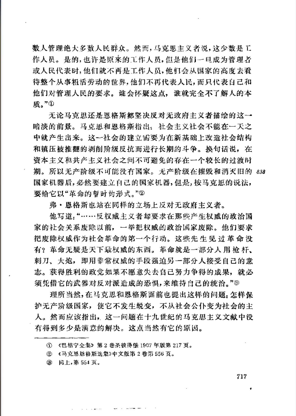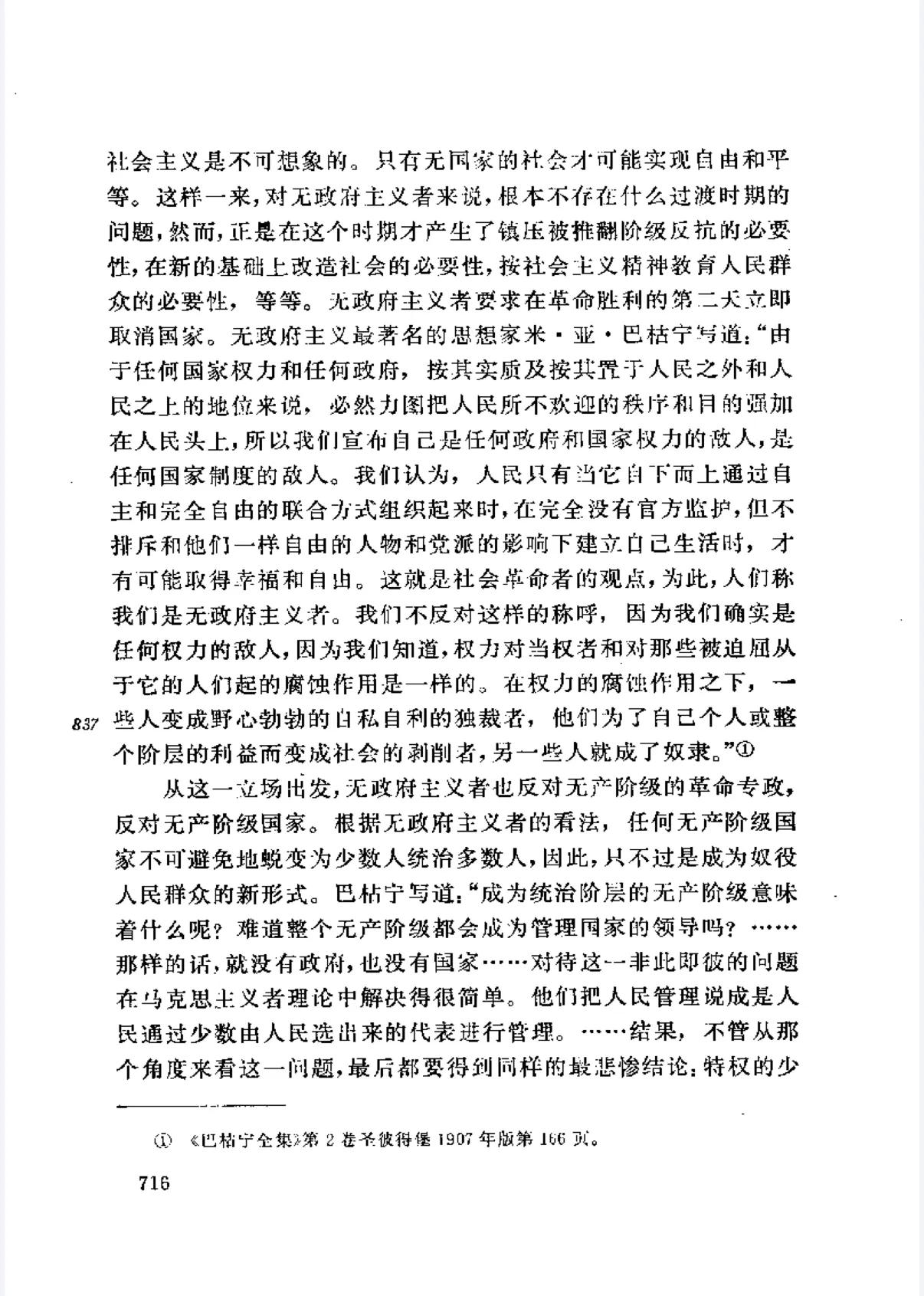 无政府主义者认为,任何……国家都不可避免地蜕变为少数人统治多数人,成为奴役人民群众的新形式。读书