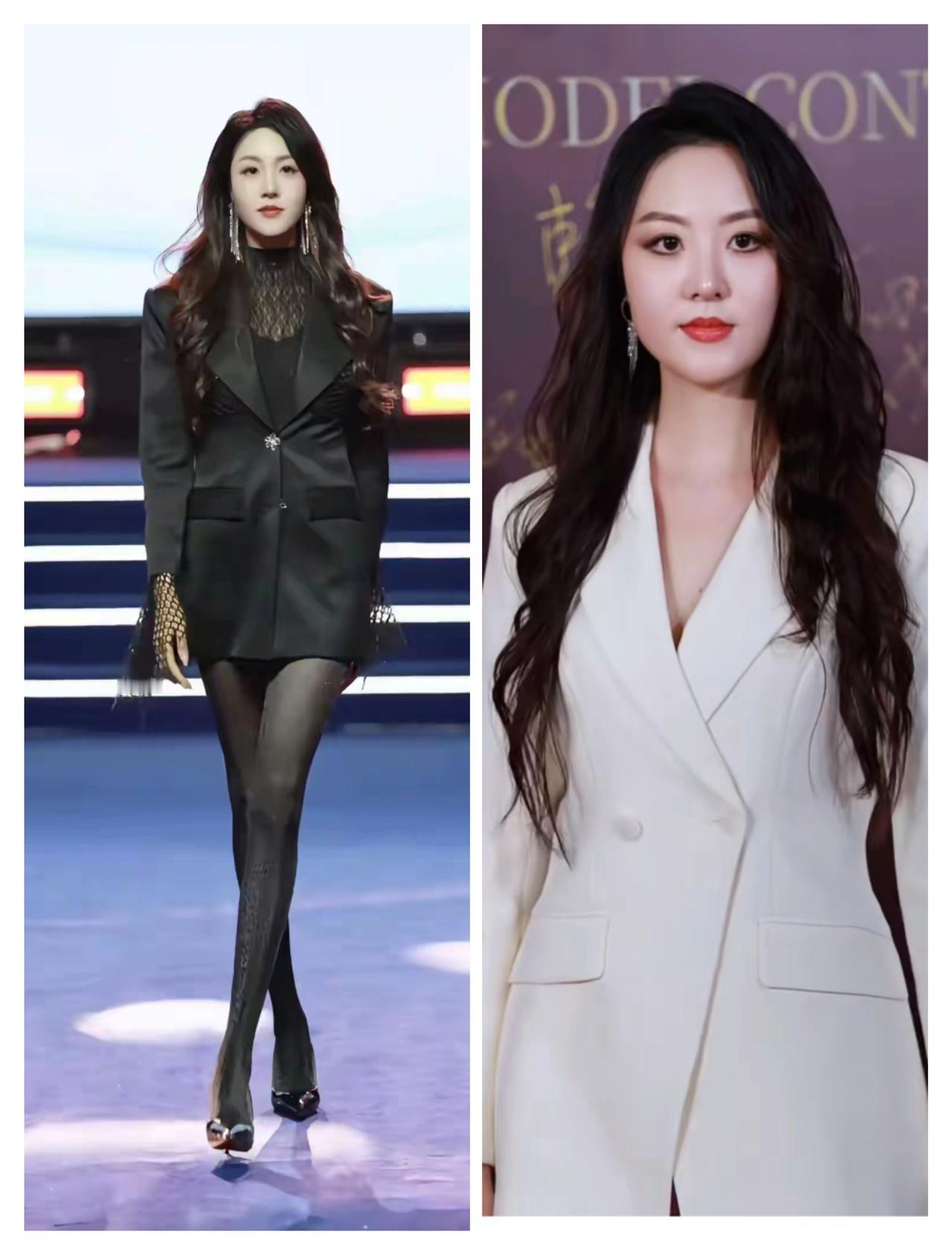 徐敏的性感太有杀伤力了!就说她在超模大赛上的黑西装蕾丝造型,一件西装裙制作花了120个小时,相当于一个工人五天五夜不睡觉,这哪是做衣服,简直是造精密仪器。 《VOGUE》评它为2024季度最佳职场进化造型,单品搜索量暴涨300%,面料咨询量创历史新高。缎面驳领、闪钻扣、镂空高领、网纱流苏,每一处细节都将酷飒与柔媚完美融合,徐敏把性感诠释得淋漓尽致。