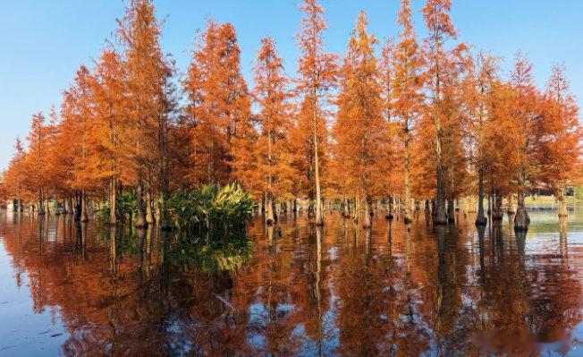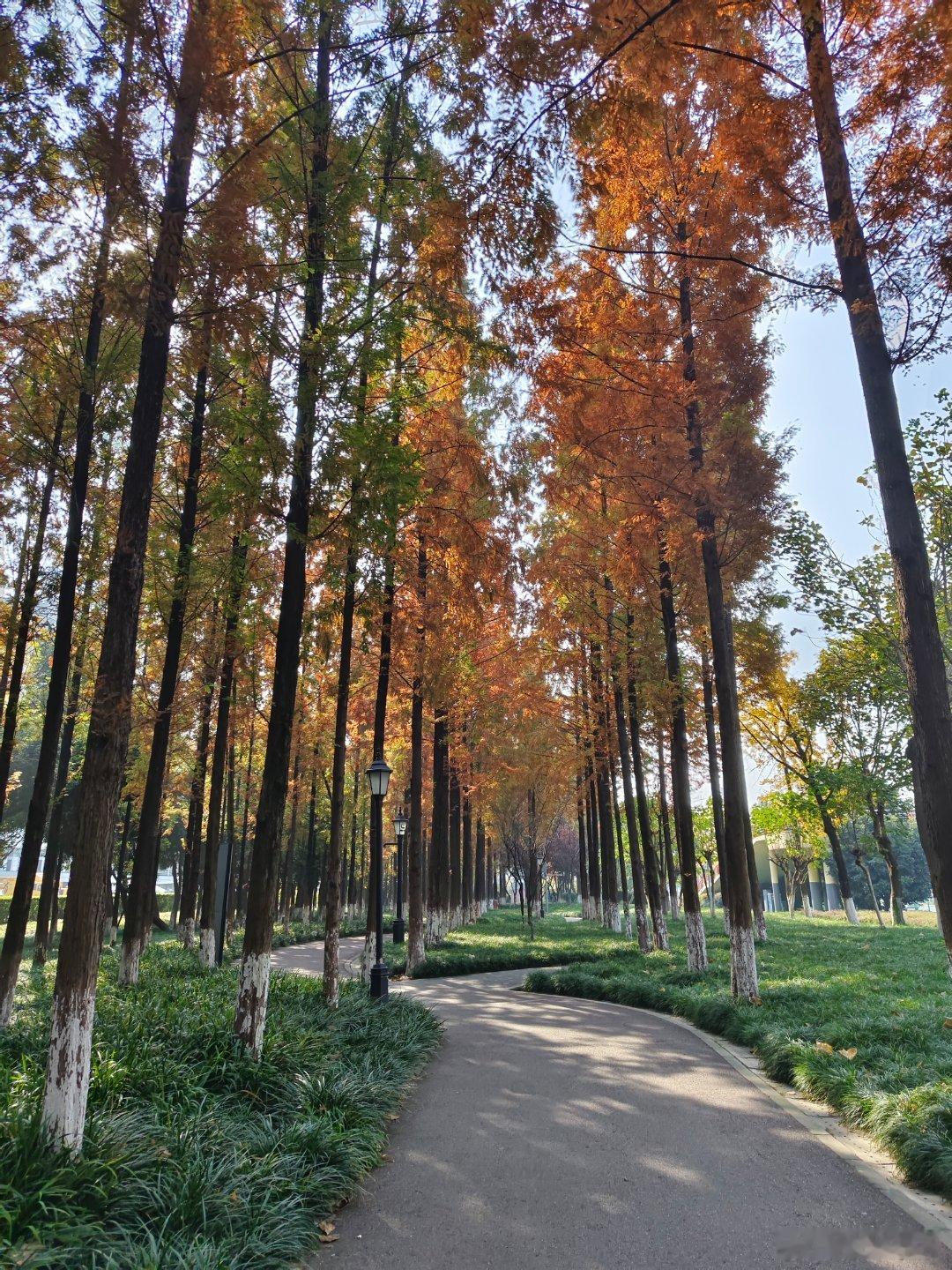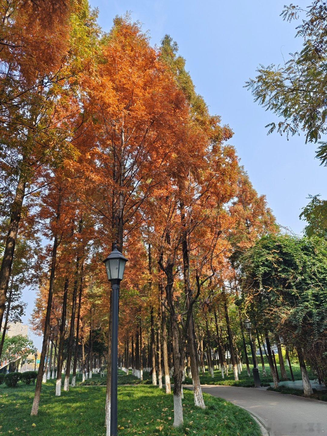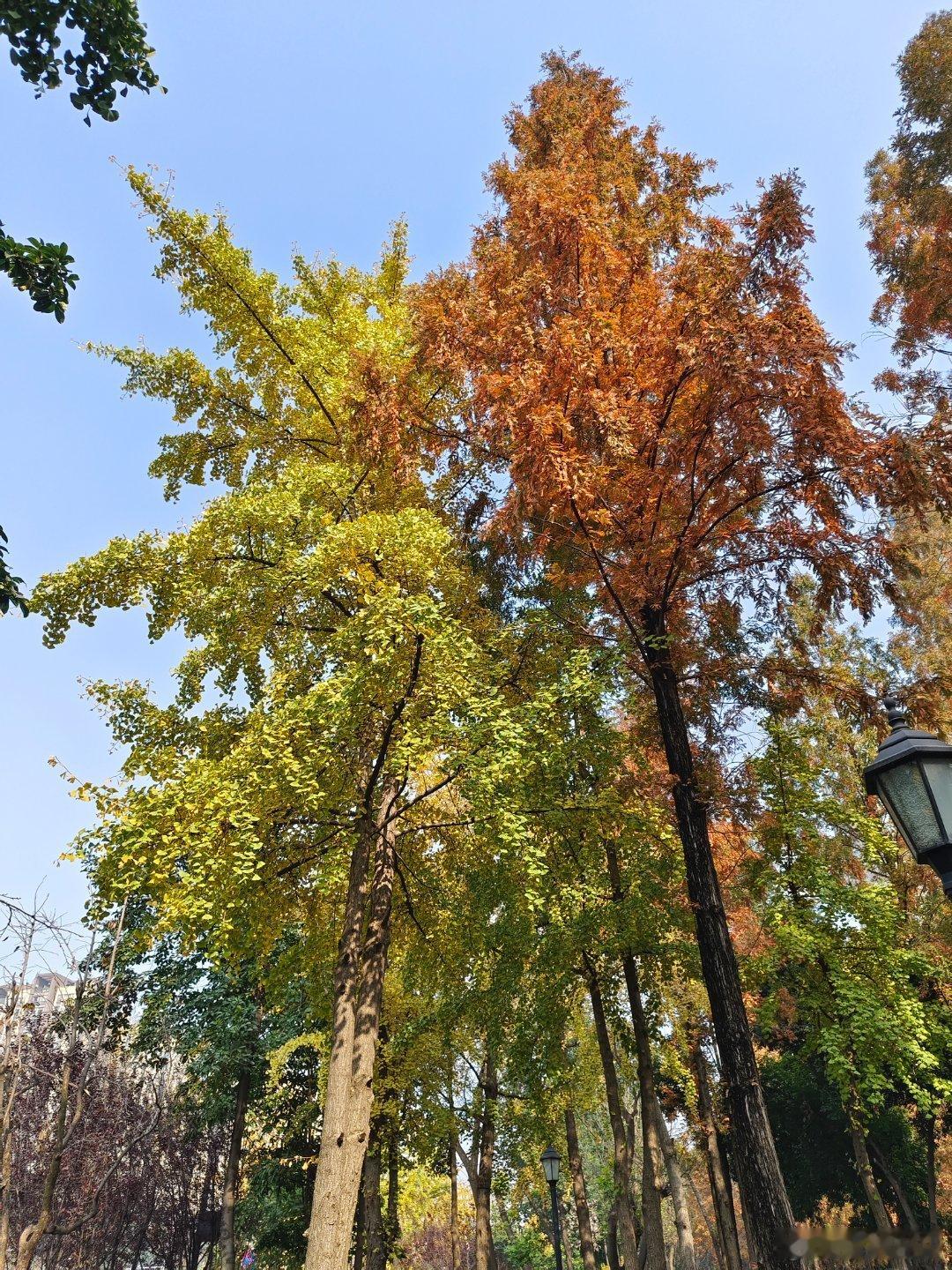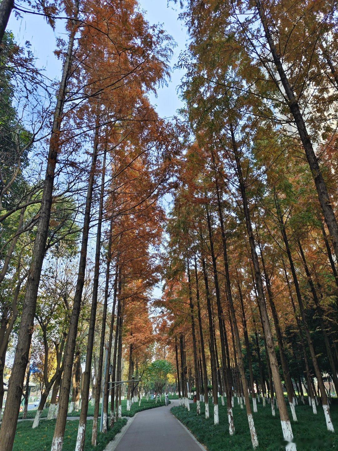 从来只觉银杏辉,枯叶耀阳似金贵。杉叶凌霜也炫美,只差镜水映锈眉。