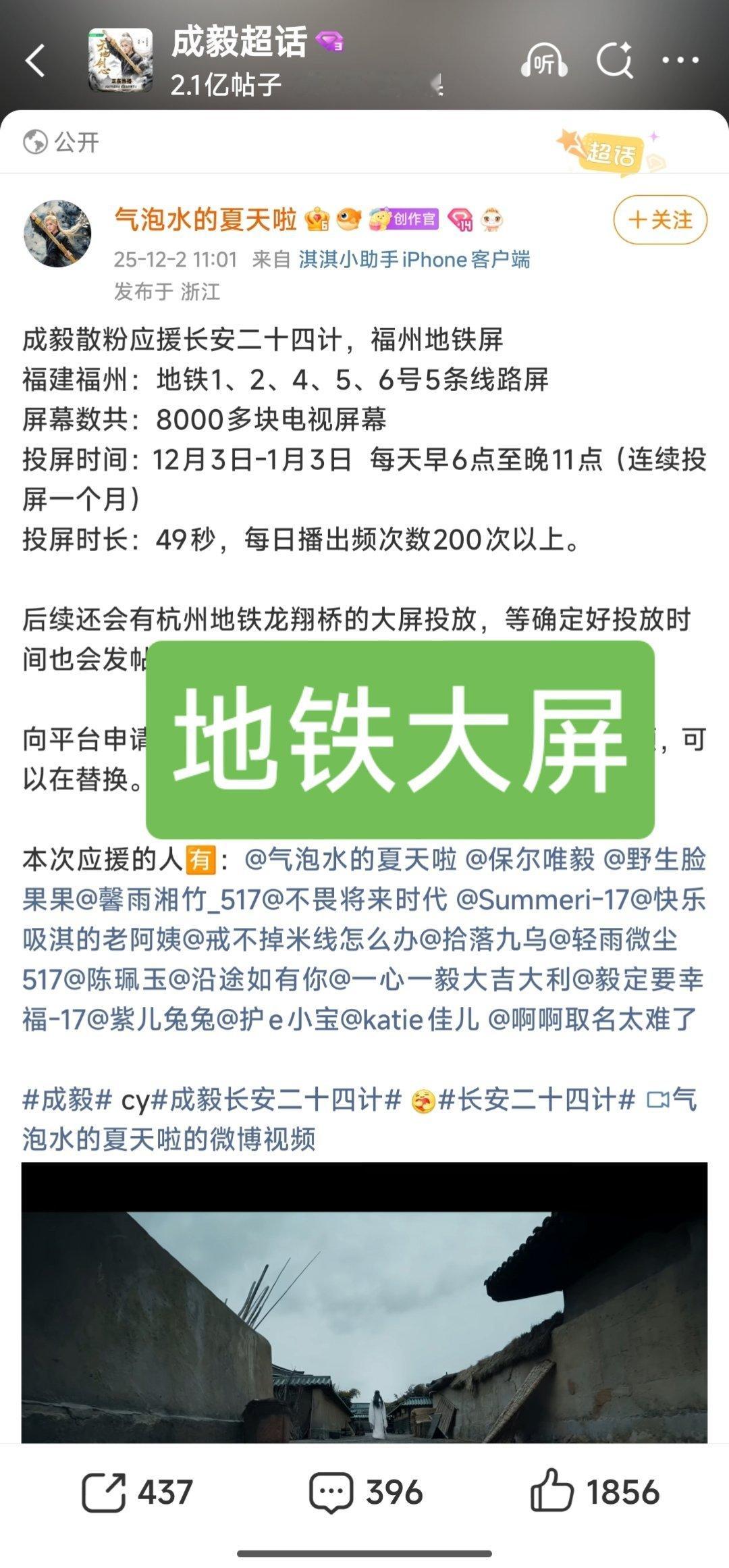 《长安二十四计》地铁大屏广告来了,成毅的商业价值与号召力又得到了印证,果果太牛了,富婆真多。具体明细——成毅散粉应援长安二十四计,福州地铁屏福建福州:地铁1、2、4、5、6号5条线路屏屏幕数共:8000多块电视屏幕投屏时间:12月3日-1月3日 每天早6点至晚11点(连续投屏一个月)投屏时长:49秒,每日播出频次数200次以上。后续还会有杭州地铁龙翔桥的大屏投放,等确定好投放时间也会发帖告知